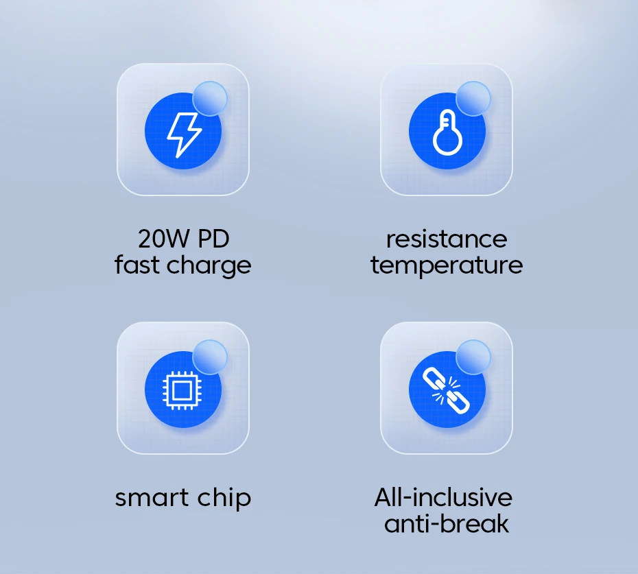 PD20W Fast Charging Effectively Speeds Up Supports for PD fast charging, which can double down on charging efficiency.
