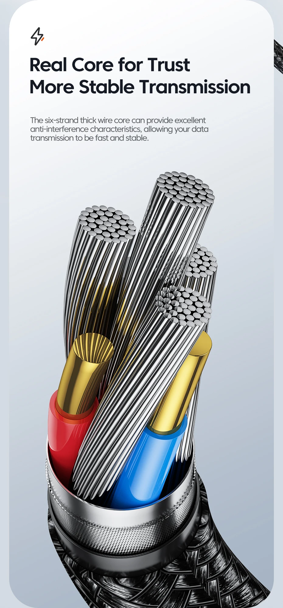 The five-strand thick wire core can provide excellent anti-interference characteristics, allowing your data transmission to be fast and stable.