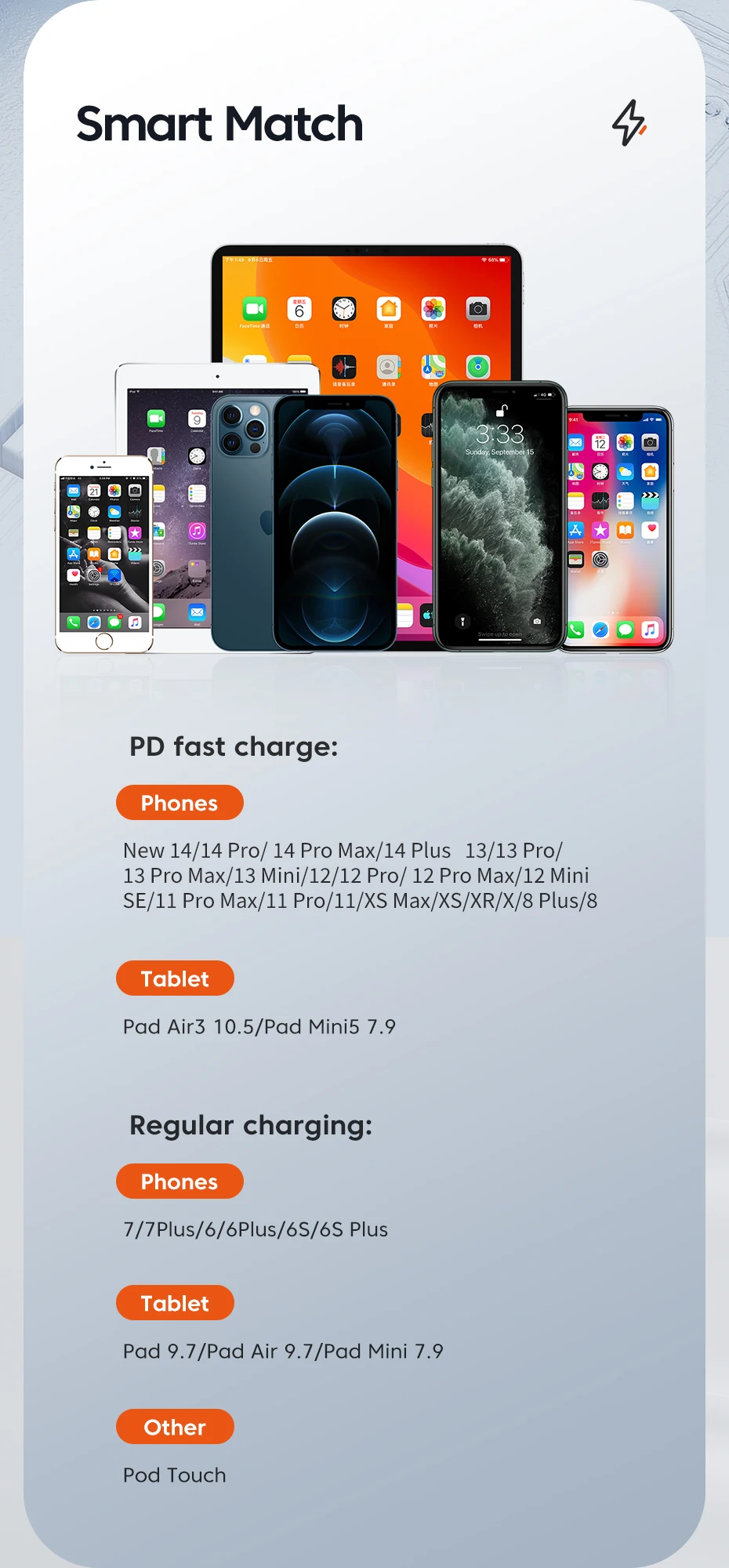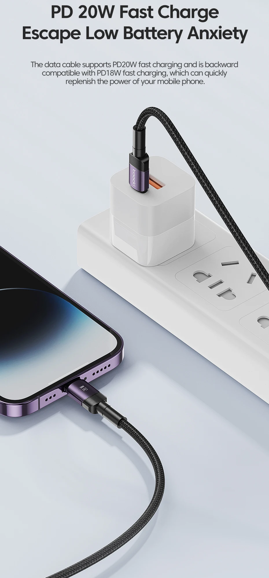 The data cable supports PD20W fast charging and is backward compatible with PD18W fast charging, which can quickly replenish the power of your mobile phone.
