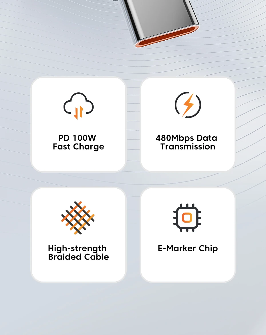 [USB-A to Type-C 100W Fast Charge] 100W High Power, Smart Chip, Fully Compatible Fast Charge, 480Mbps Data Transmission E-mark ship