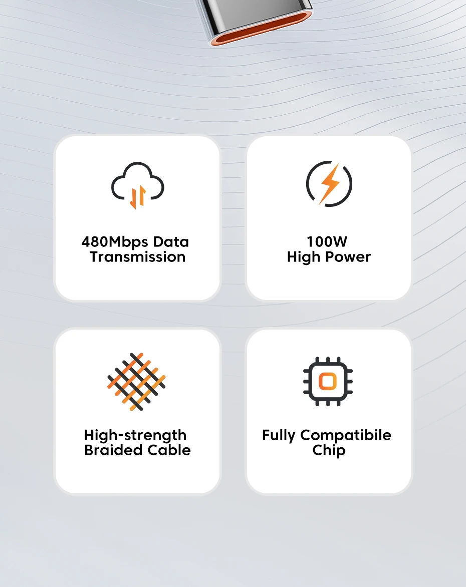 The data cable supports PD 100W fast charging, which can quickly replenish the power of your laptop.
