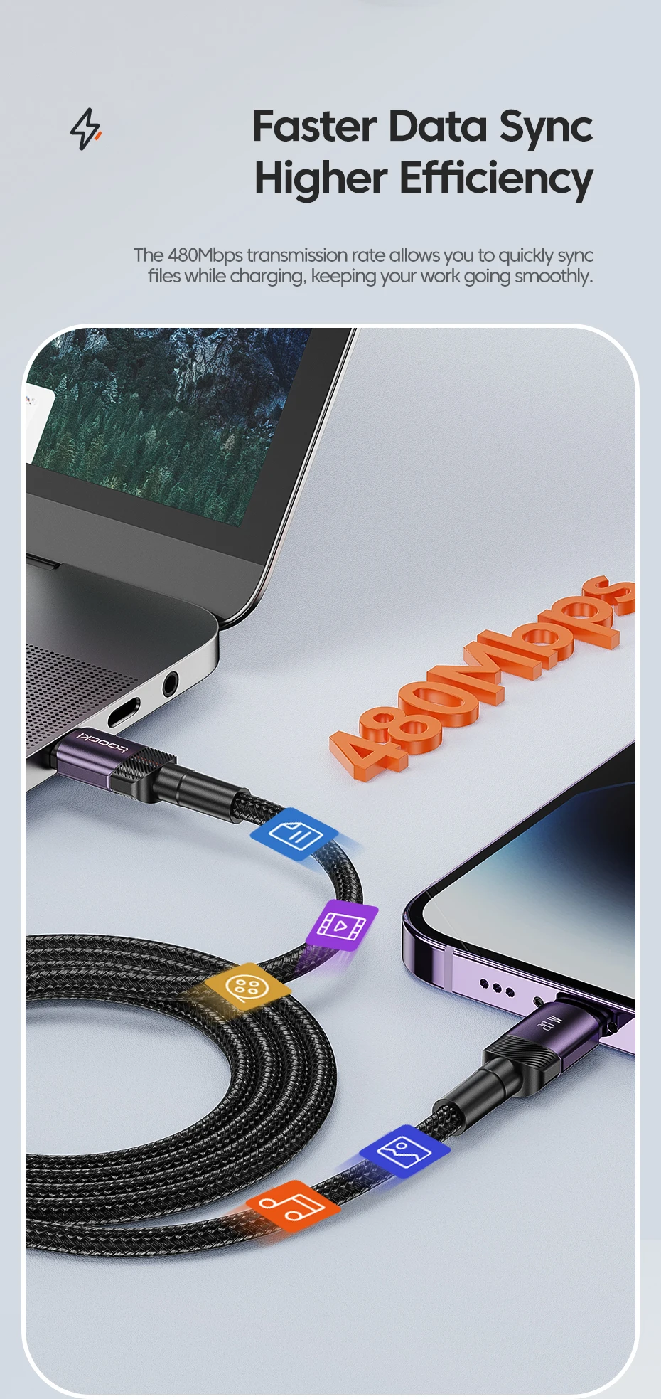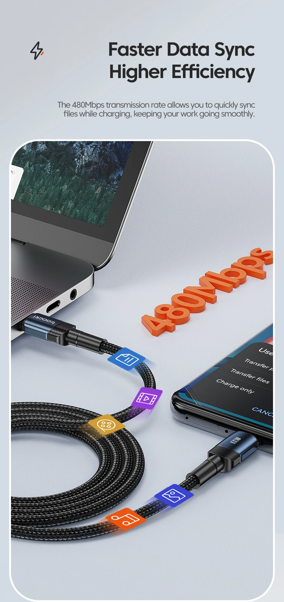 The 480Mbps transmission rate allows you to quickly sync files while charging, keeping your work going smoothly.