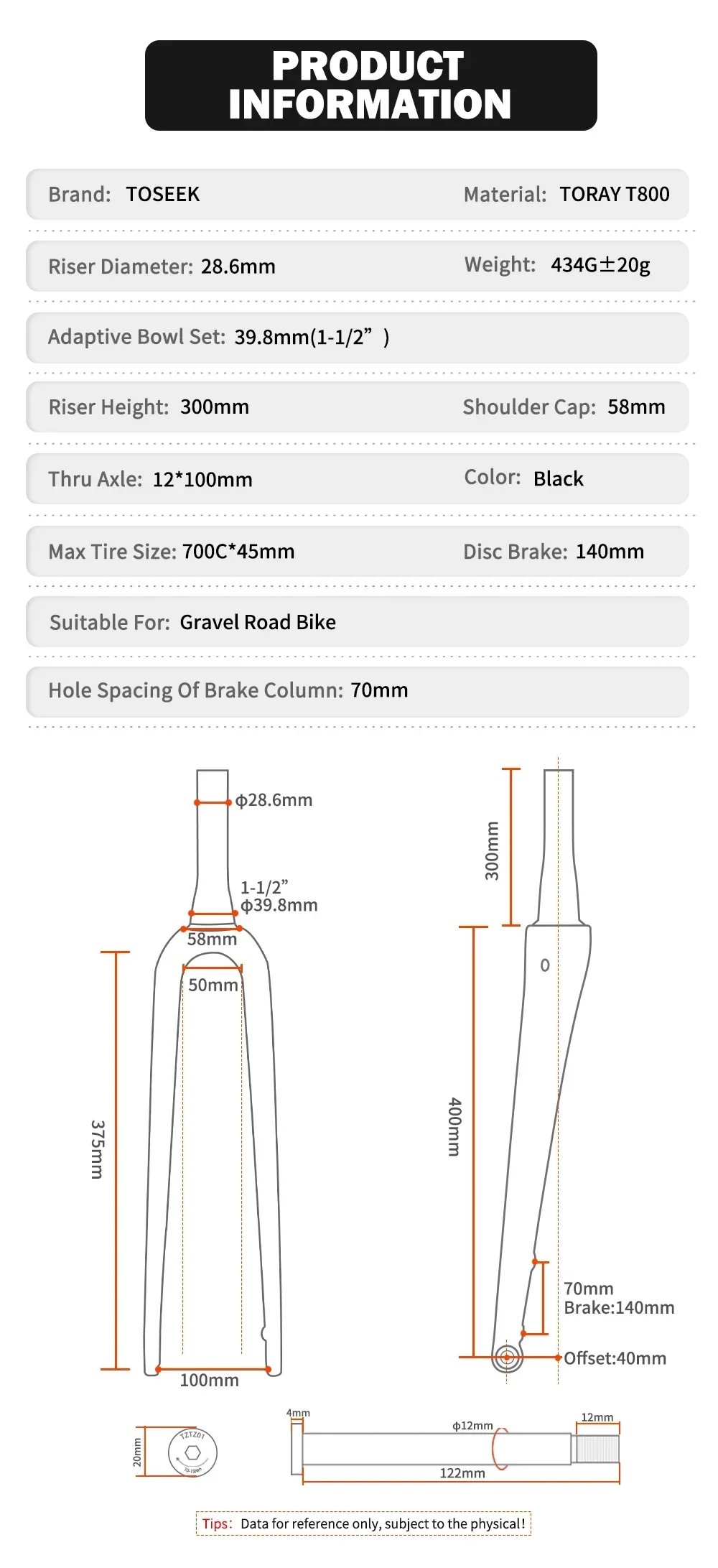 Be the first to review “TOSEEK 700C*45 Fork Full Carbon Gravel Bicycle Fork 12*100mm Thru Axle Road Bike Fork Internal Cable for Disc Brake”