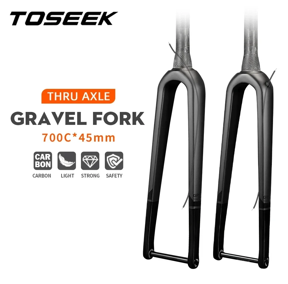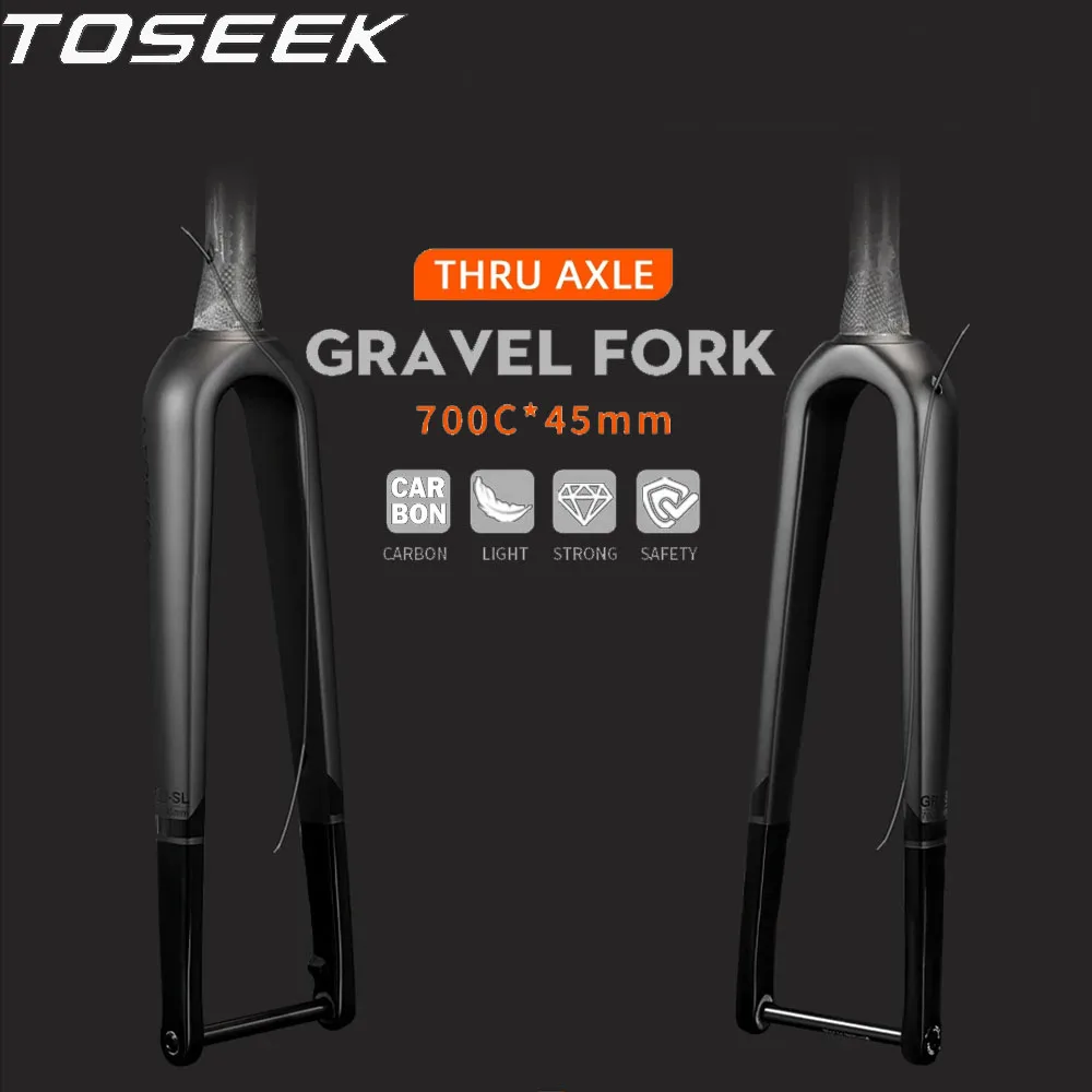 TOSEEK 700C*45 Fork Full Carbon Gravel Bicycle Fork 12*100mm Thru Axle Road Bike Fork Internal Cable for Disc Brake