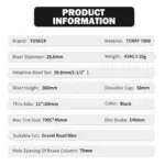 • Riser Diameter: Upper tube 28.6 mm Lower pipe 39.8 mm