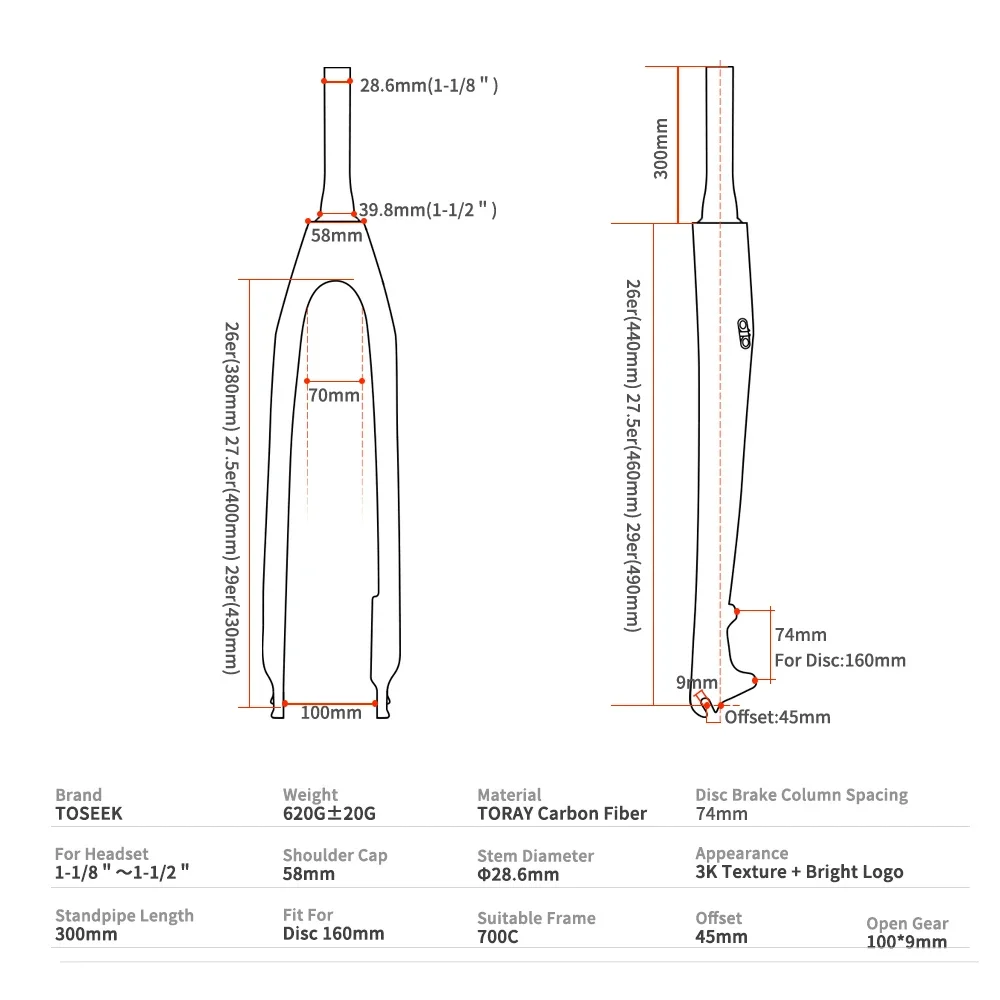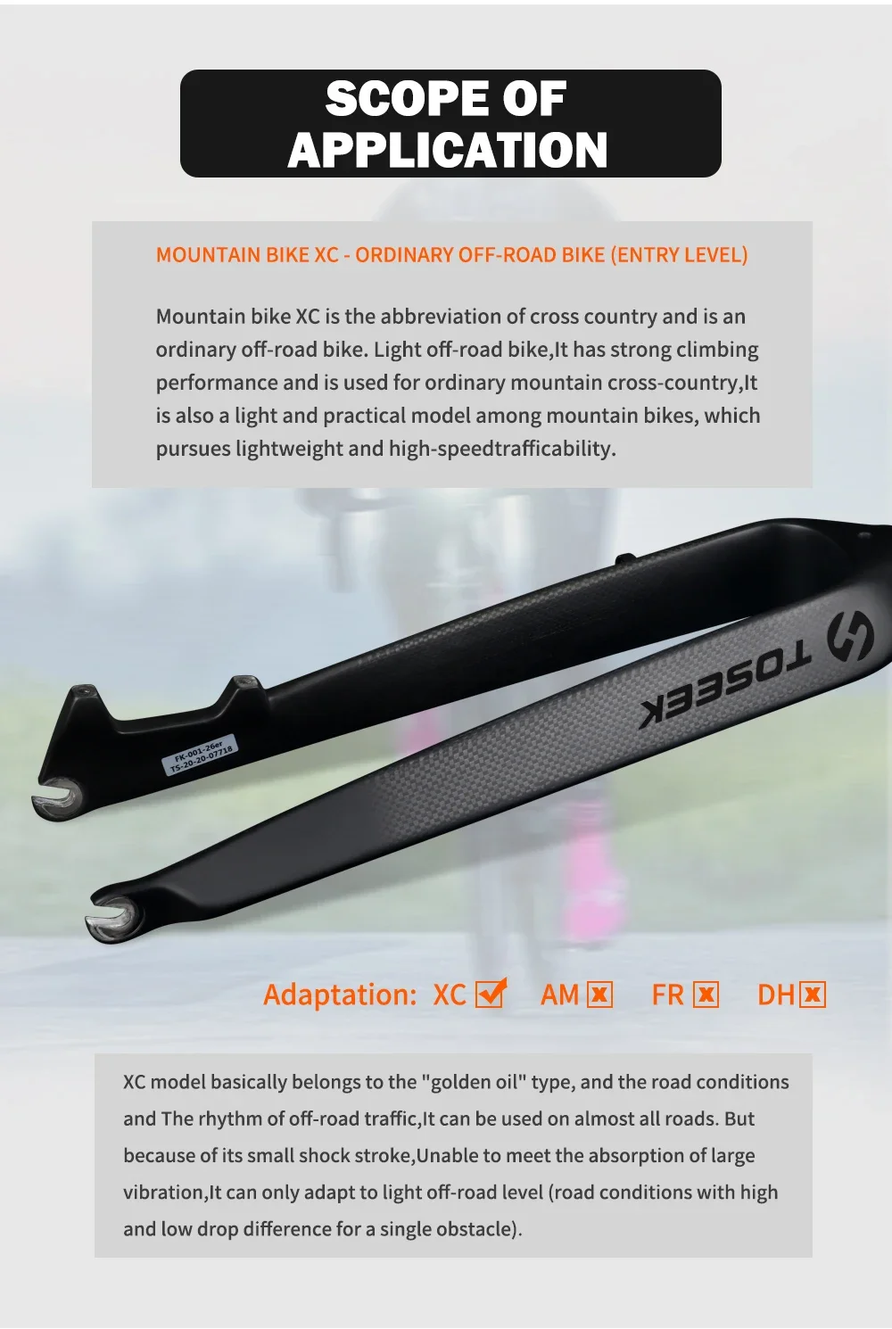 TOSEEK Carbon MTB Fork 26/27.5/29 Mountain Bike Fork Full Carbon MTB Rigid Fork 9*100MM Straight/Tapered Tube Bike Front Forks