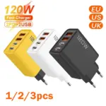 Total 120W 1/2/3 Pcs Fast Charger Type C Quick Charge 3.0 USB Charger Adapter For iPhone Samsung Xiaomi PD Fast Charging Plug