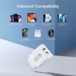 Note : Hi, the “65W” in the charger represents a total of 65W (QC3.0 port+PD port), and two ports can reach 65W MAX. It can only be used for phone charging and does not support laptop charging.