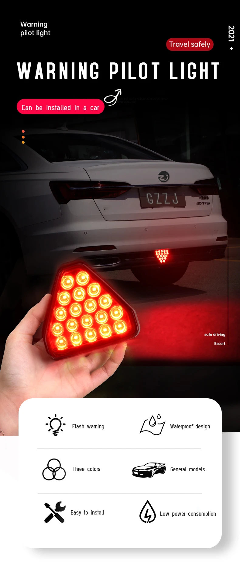Triangle LED Car Brake Tail Light F1 Style Red Reversing Stop Flash Warning Fog Lights Anti-collision Auto Singal Lamp 12v