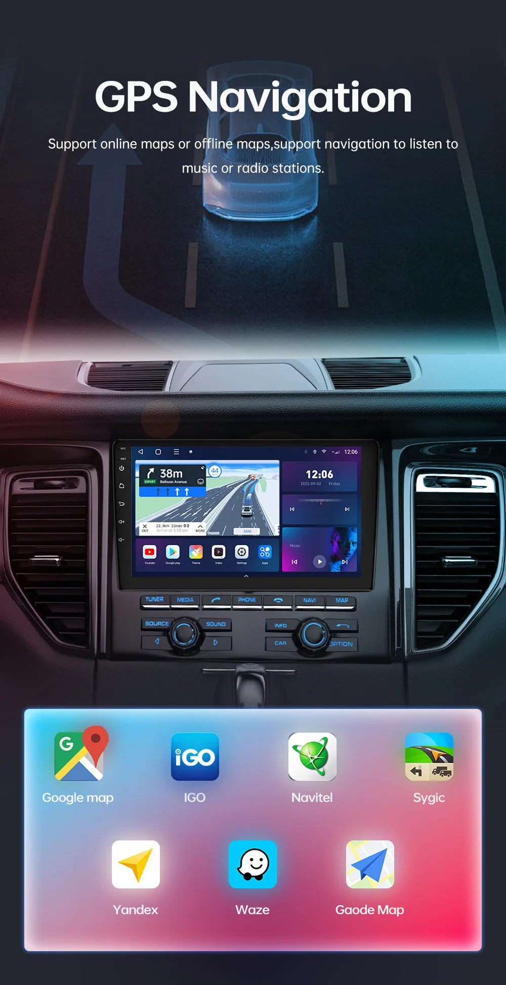 2. The radio of CARTAOTAO can install navigation applications such as IGO or Sygic or yandex