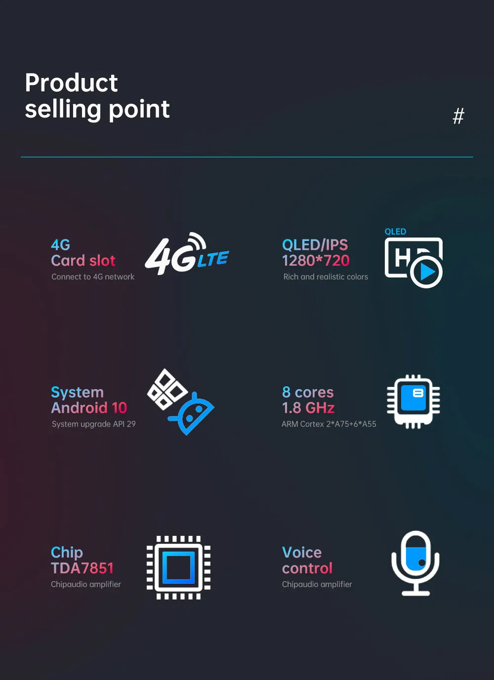 • Special Features: Built-in Gps,Charger,Mobile Phone,MP3 players,CarPlay,android auto,Reversing Input,Split Screen