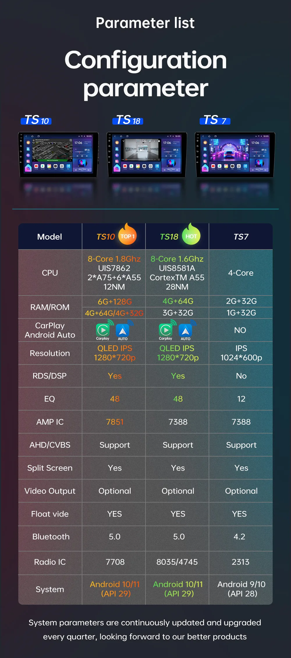 TS10 TS18 2din Android 11 9/10 inch car radio GPS WIFI CarPlay DSP QLED multimedia player for Toyota VW Hyundai Kia Nissan Honda