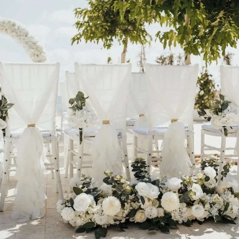Tulle Chair Back Decoration Organza Sheer Gauze Chair Sashes Ruffles Chair Sashes Hotel Wedding Banquet Party Decorations Supply