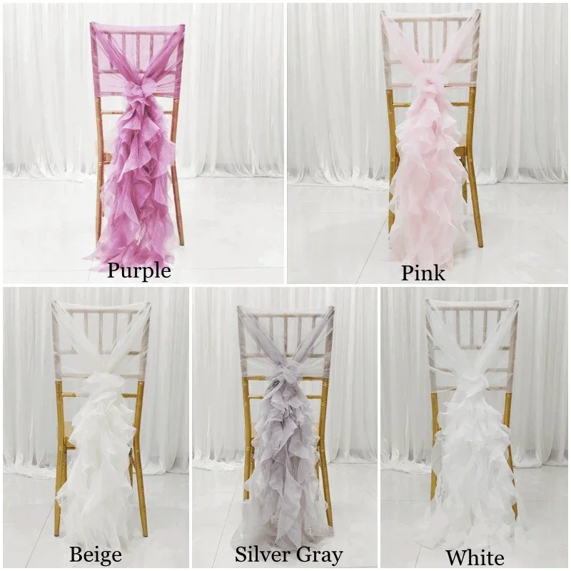 Tulle Chair Back Decoration Organza Sheer Gauze Chair Sashes Ruffles Chair Sashes Hotel Wedding Banquet Party Decorations Supply