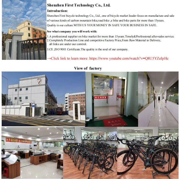 >1.Twitter Bicycle factory is located in Longhua Shenzhen and it is an enterprise focusing on the design and development,production and sales for middle-to-high range bicycles, which has more than 100 employees and over 5000 square meters of factory. >2.The company adheres to excellent design, High-quality products, perfect service, pragmatic prices to meet customer needs and continue tracking of domestic and foreign advanced technology, and strengthen the development of new products. >3.We main lining bikes(Road bike,mountain bike,folding bike,e bike,children bike and etc) and accessories(bike frame,fork,wheels and etc).Exported products to over the world. >4.There are 40% in the Southest of Asia markets;10% in the America markets;10% in the Europe markets;10% in the the Middle East and etc.