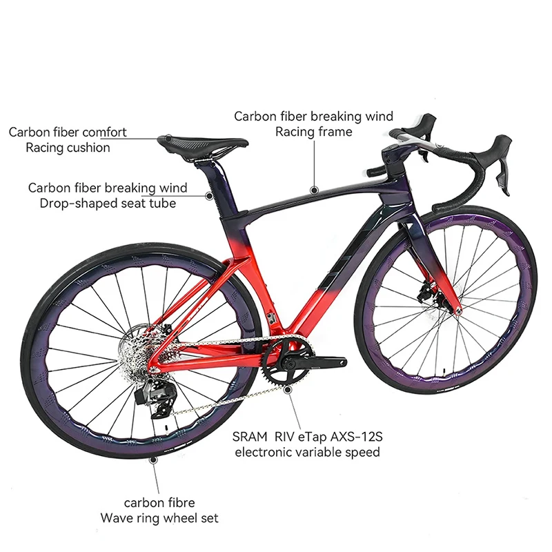 Specification: TWITTER Wireless Carbon Road Bicycle /RIVAL eTap AXS-2X12Speed carbon fiber racing road bike/ road Bike With 50mm Carbon Wheels For Men/ ultra-light competition hydraulic brake bicycle / top grade wireless bicycle for adult