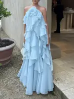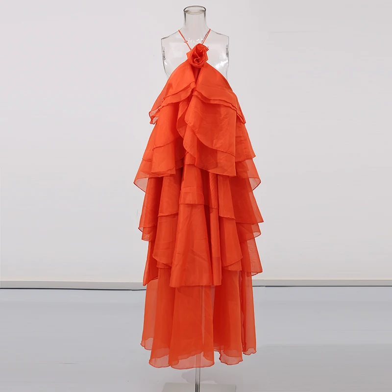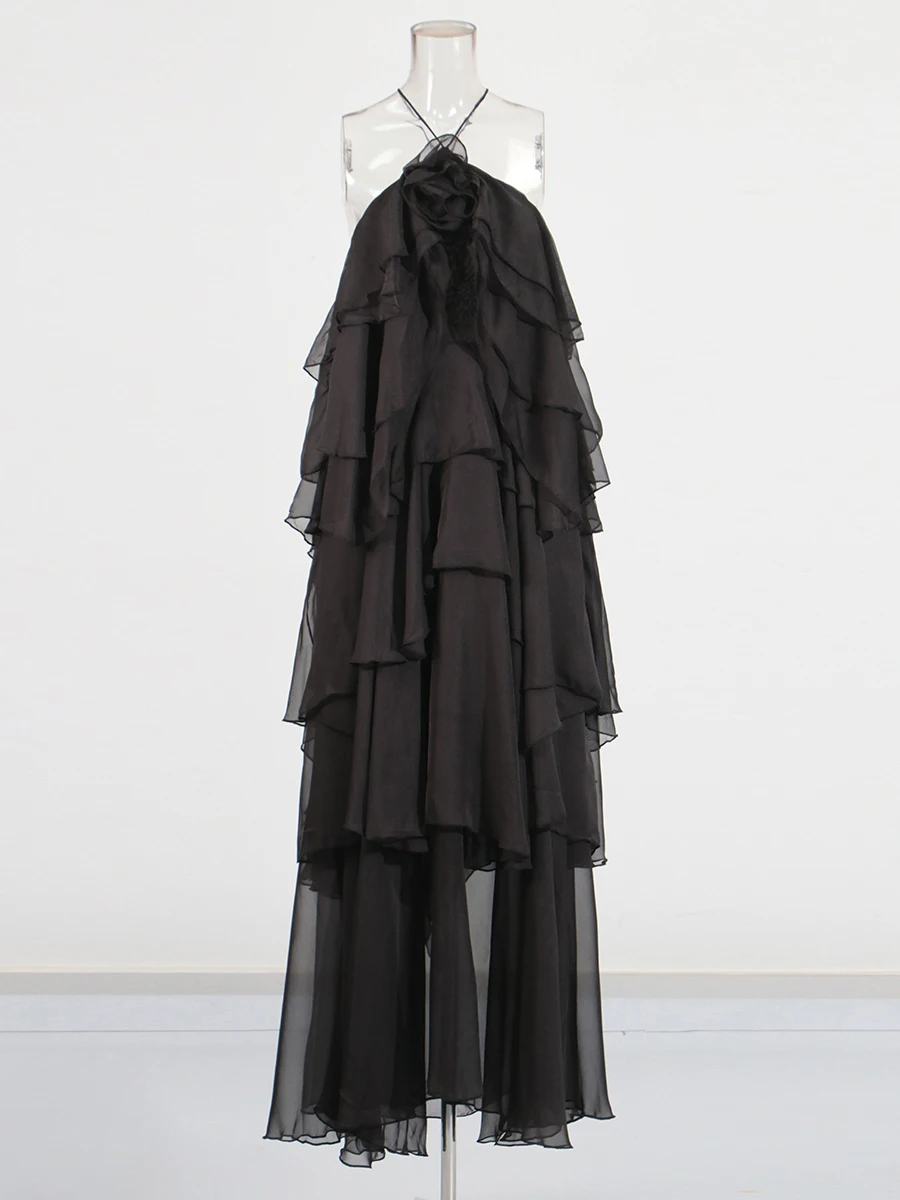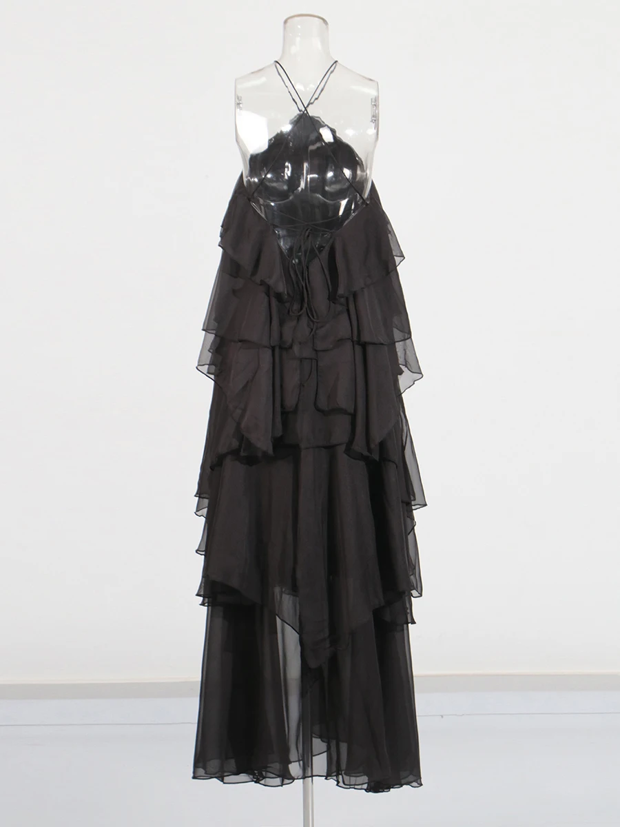 Be the first to review “TWOTWINSTYLE Solid Spliced Ruffles Elegant Dresses For Women Halter Sleeveless High Wasit Backless Loose Dress Female Fashion”