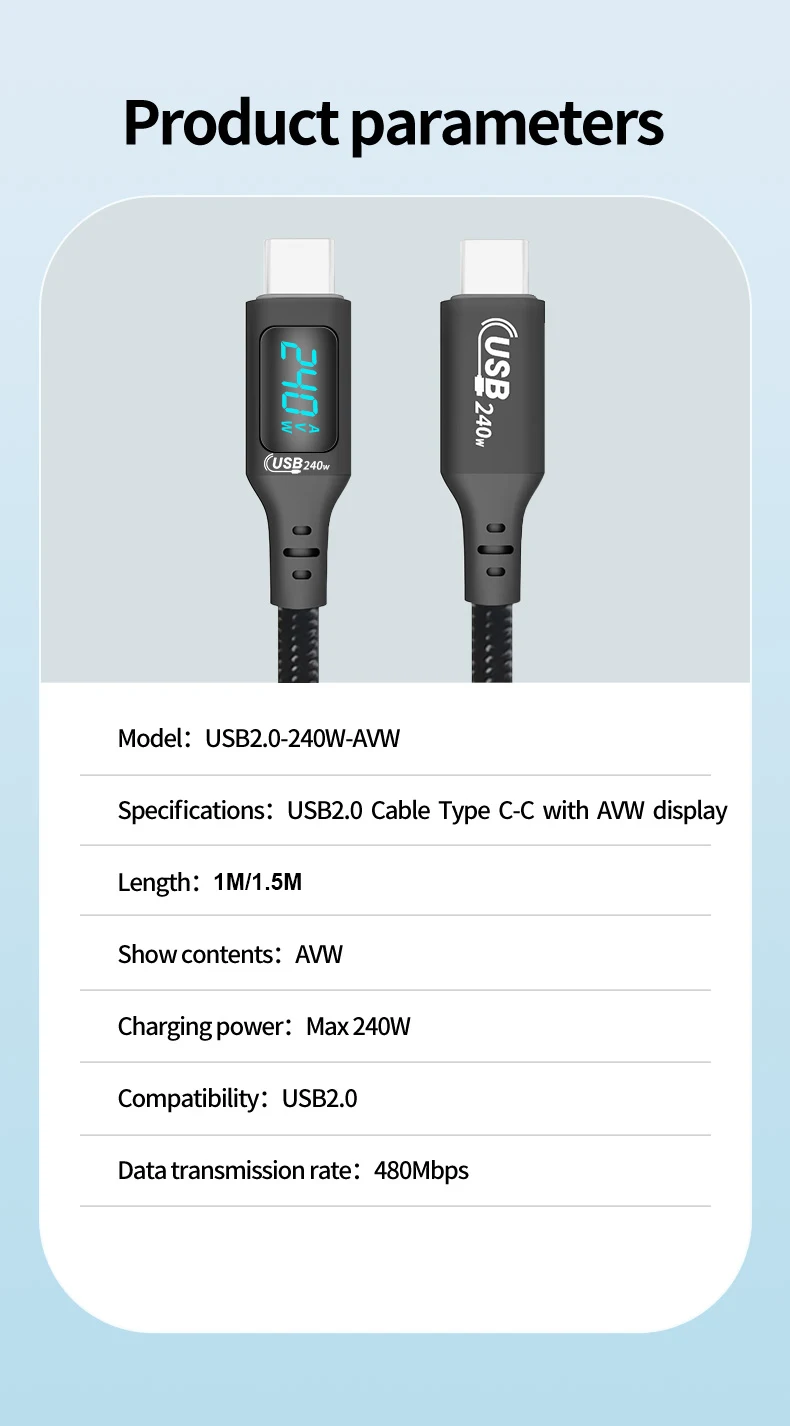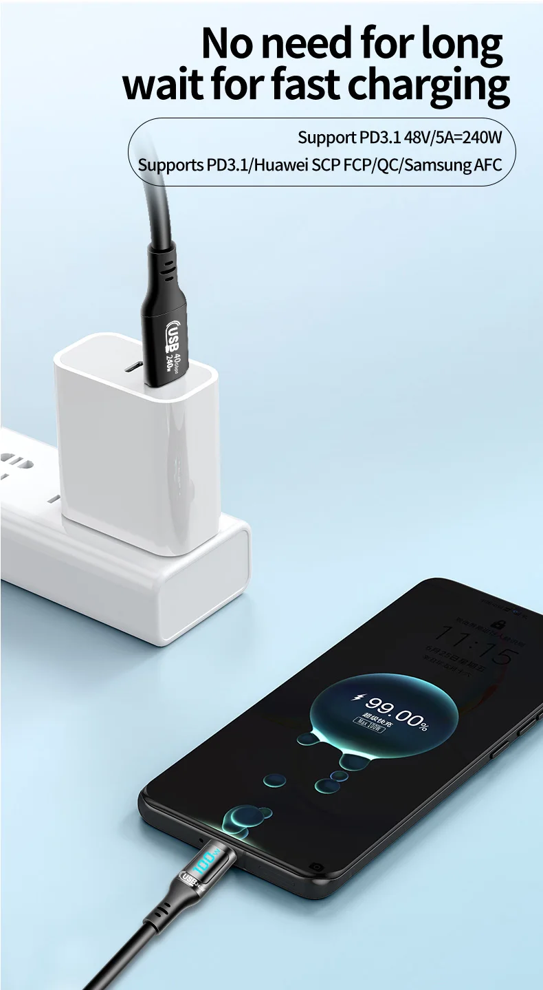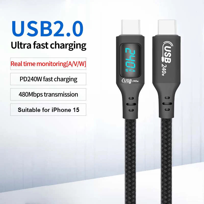 Ueetop 240W Type C to USB C Cable with LED Display 140W/100W PD3.1 Fast Charging Charger Cord for iPhone 15 MacBook Pro Samsung