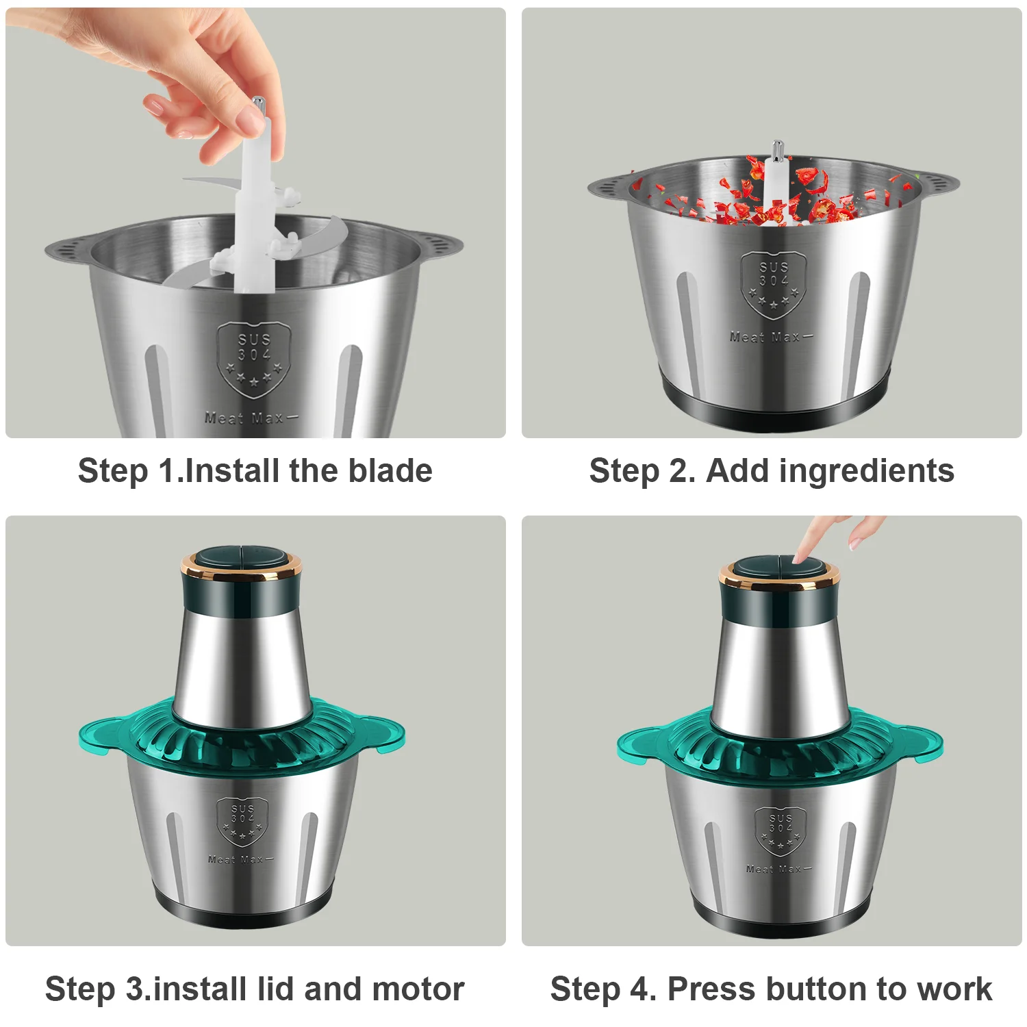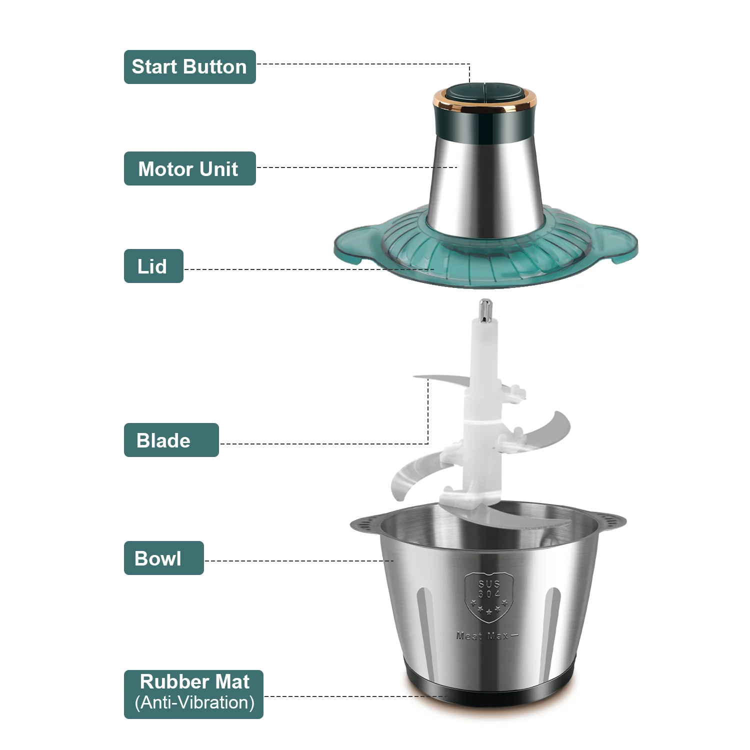 [UK STOCK] 3L Meat grinder Electric Meat Grinders Stainless Steel Food Crusher Multifunctional Vegetable Slicer Chopper Mincer