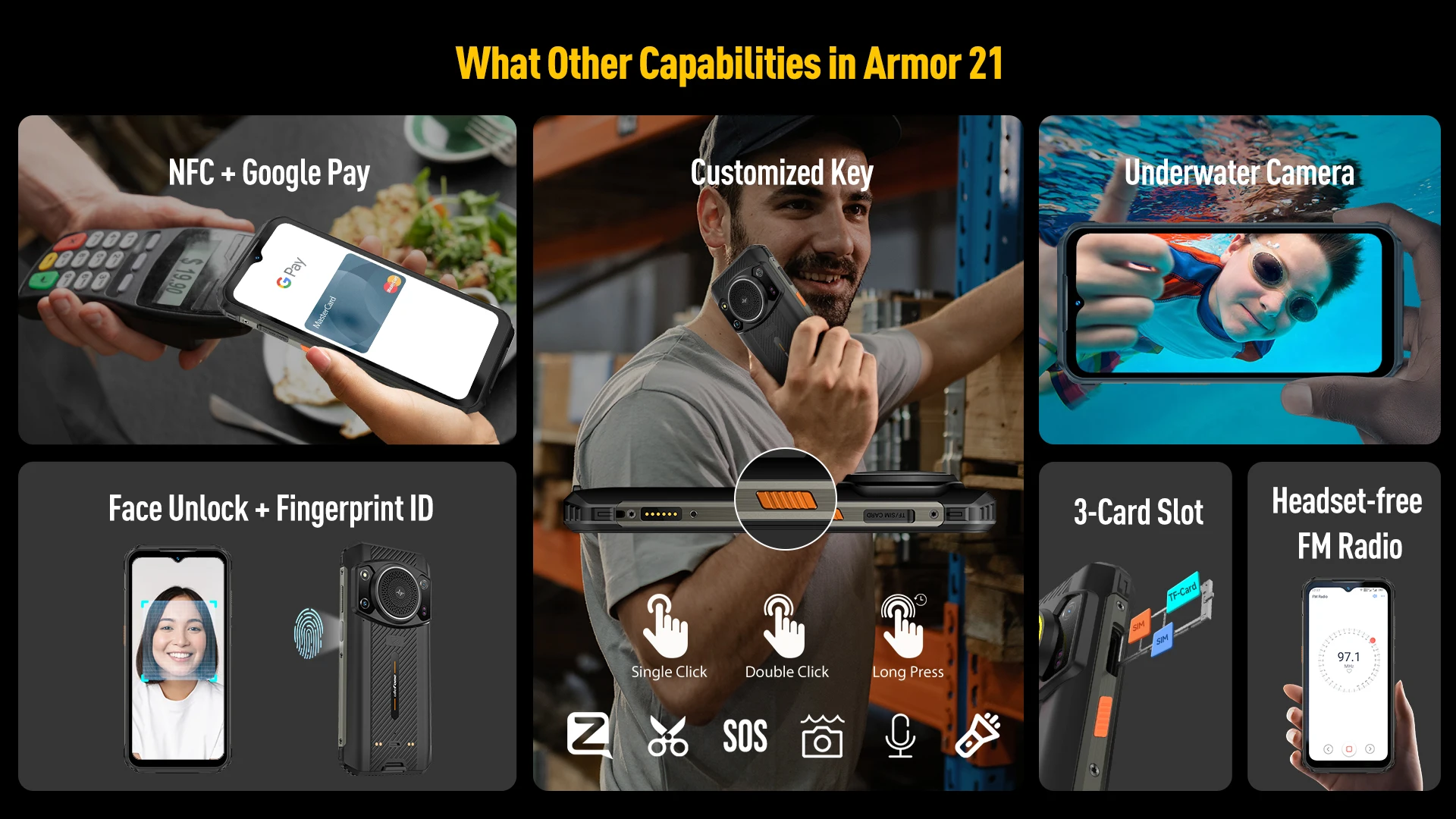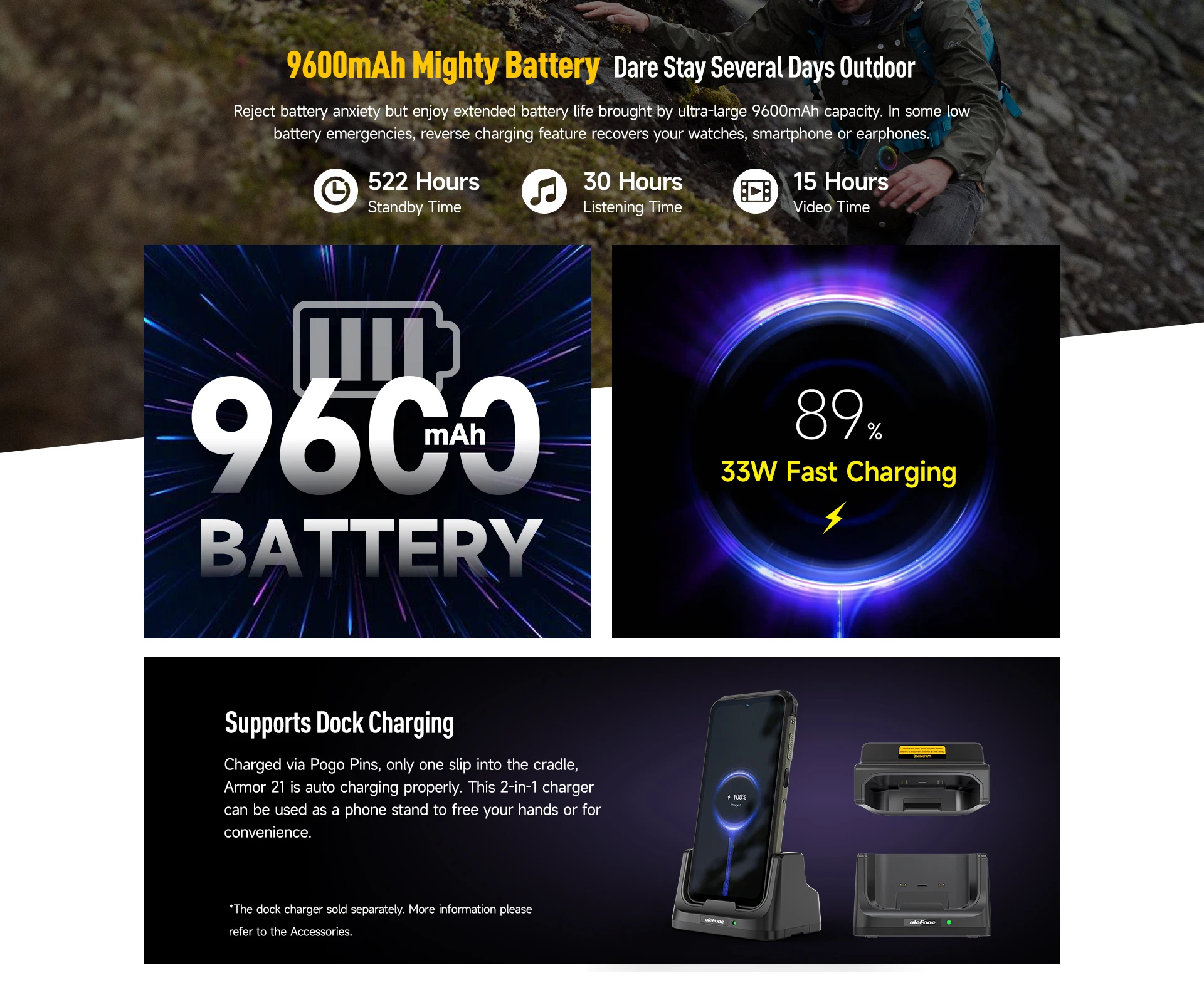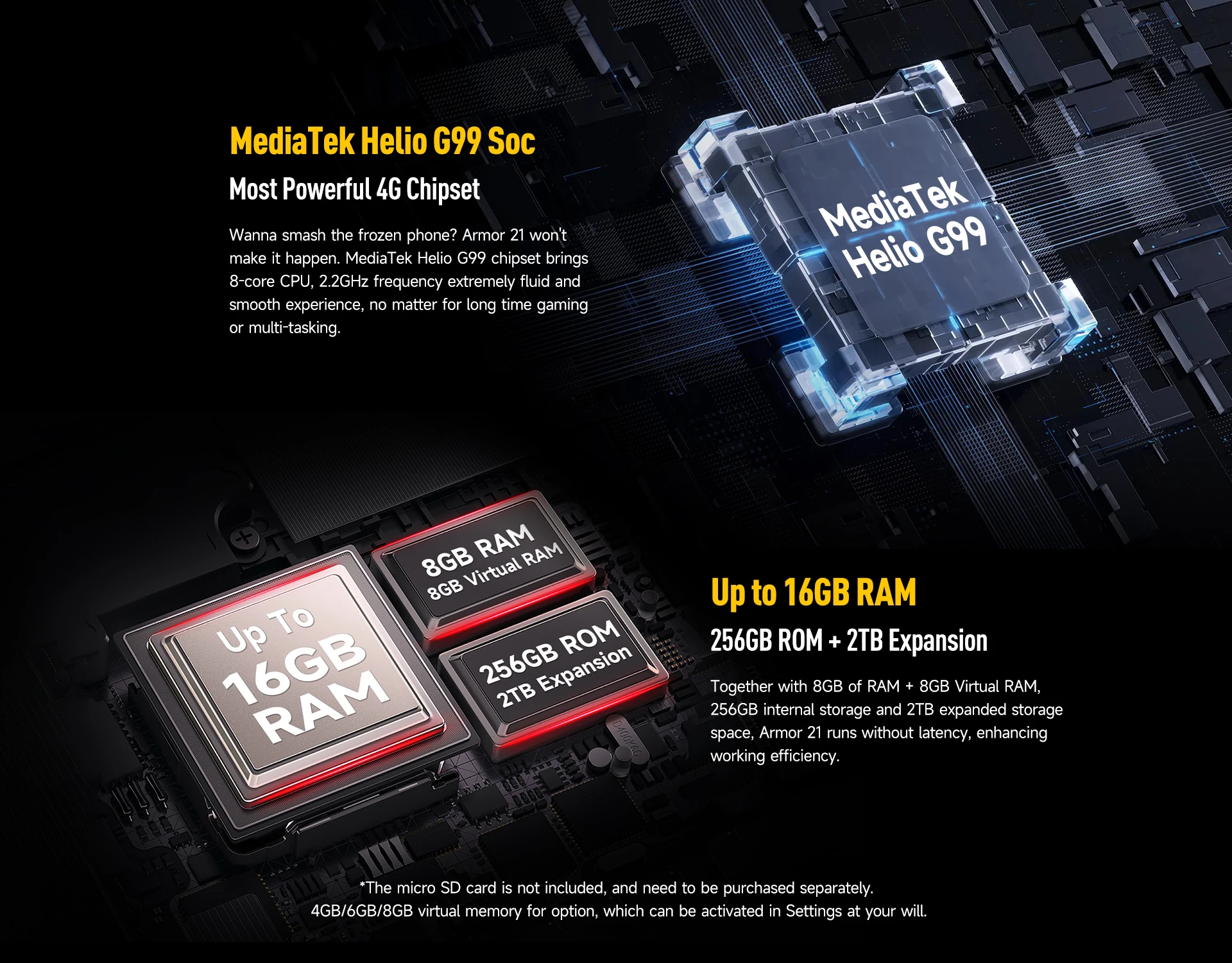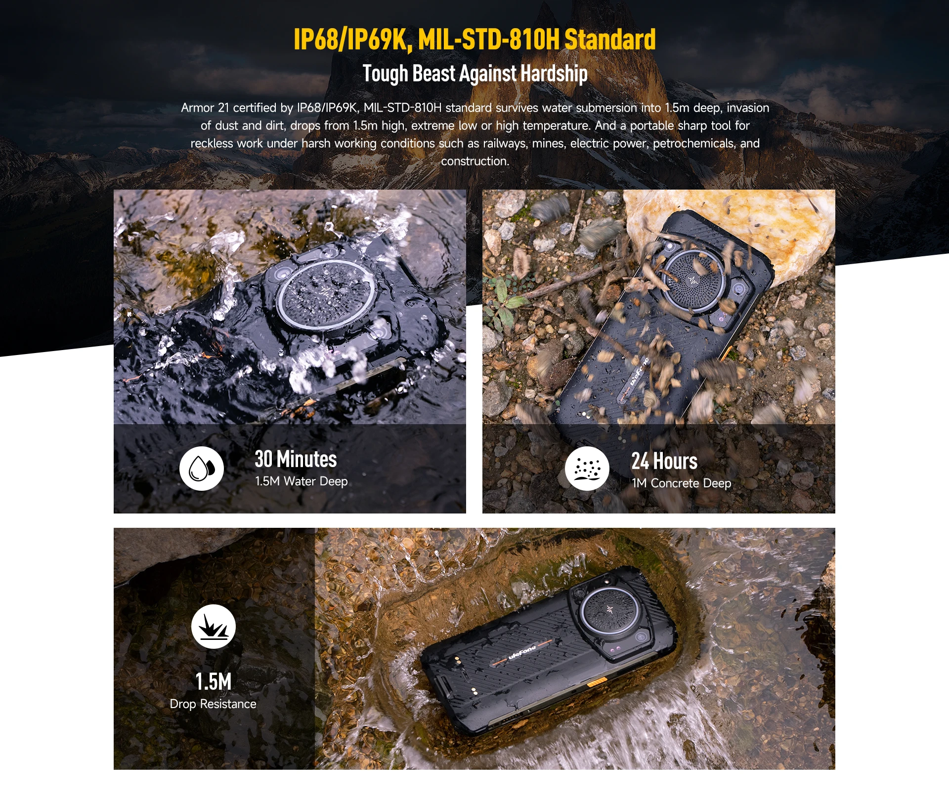 Ulefone Armor 21 Rugged Phone 16GB RAM 256GB ROM Smartphone Android 13 G99 moblie phone 64MP 9600mAh 4G Cellular Global Version