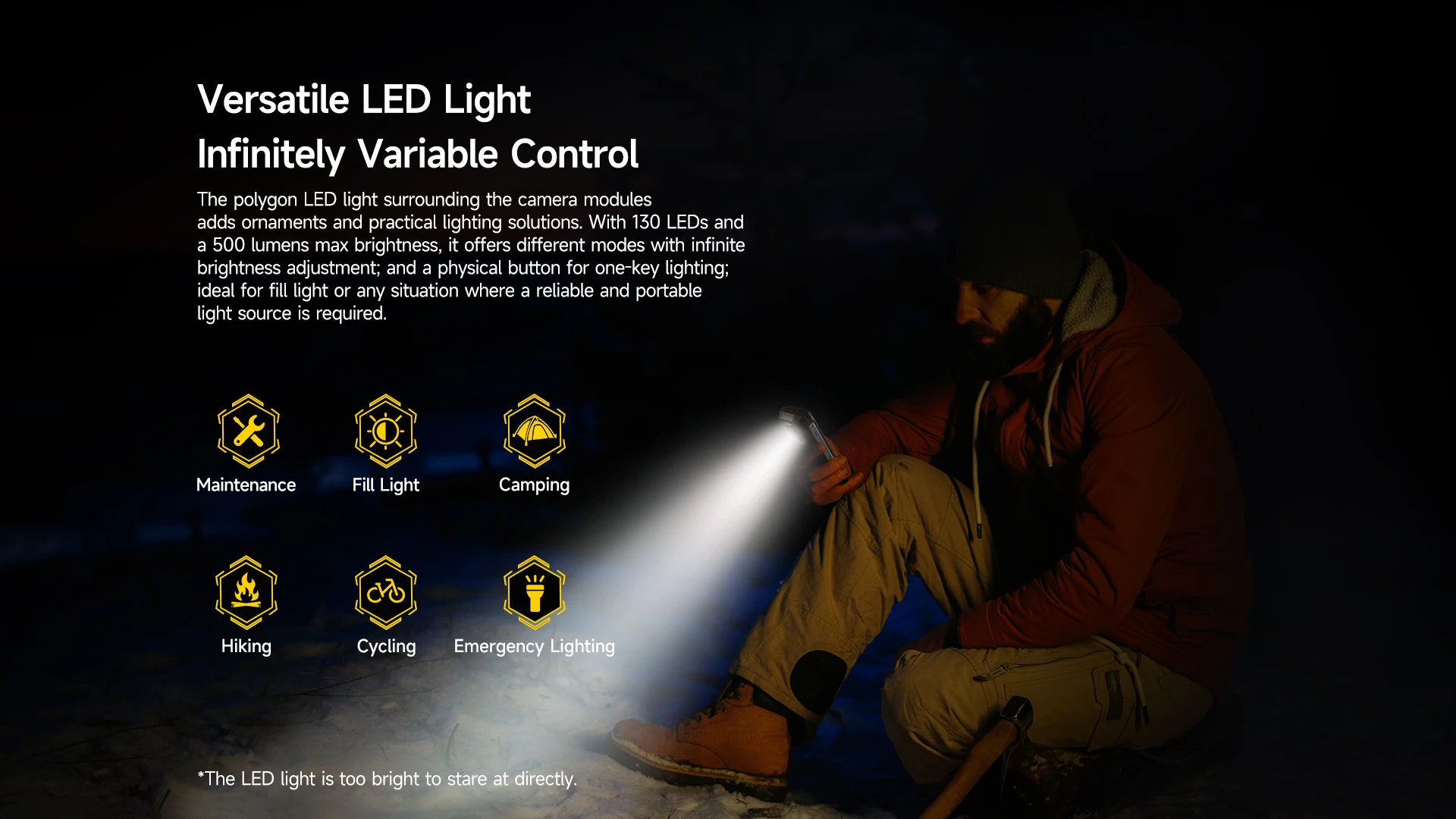 Details: Samsung GN1 CMOS sensor, 1.2μm, 7 piece lens, FOV 85°, ƒ/1.95 large aperture |