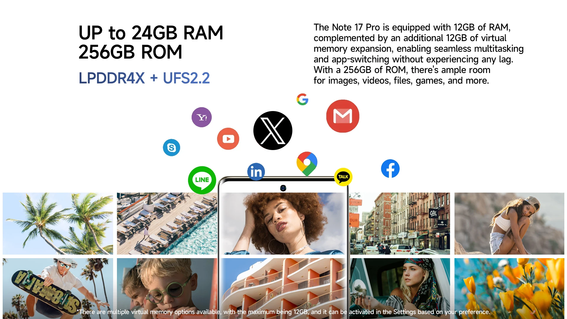 • 24GB RAM =12GB RAM +12GB RAMvirtual RAM (The virtual RAM can be activated in Settings at your will. )