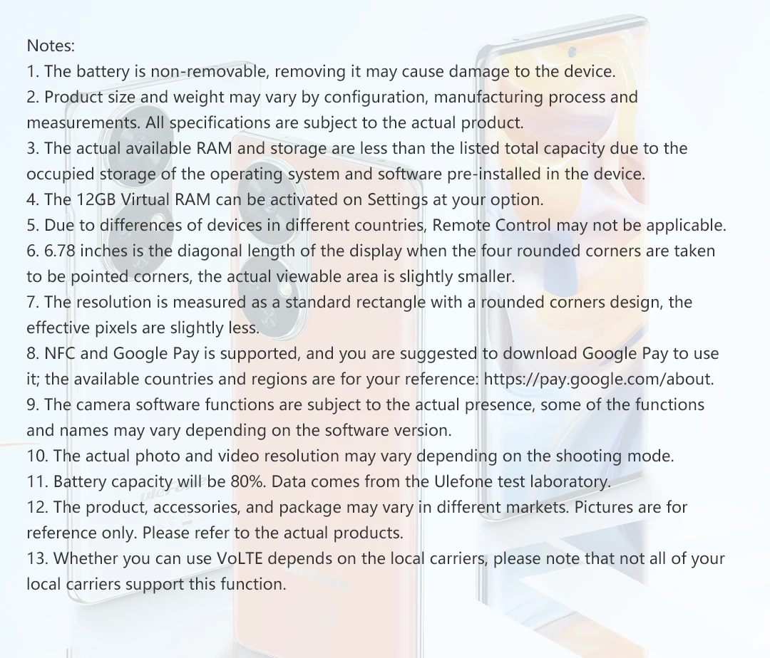 • IR Blaster ; Android 13; NFC-enabled Device ; OTG Function