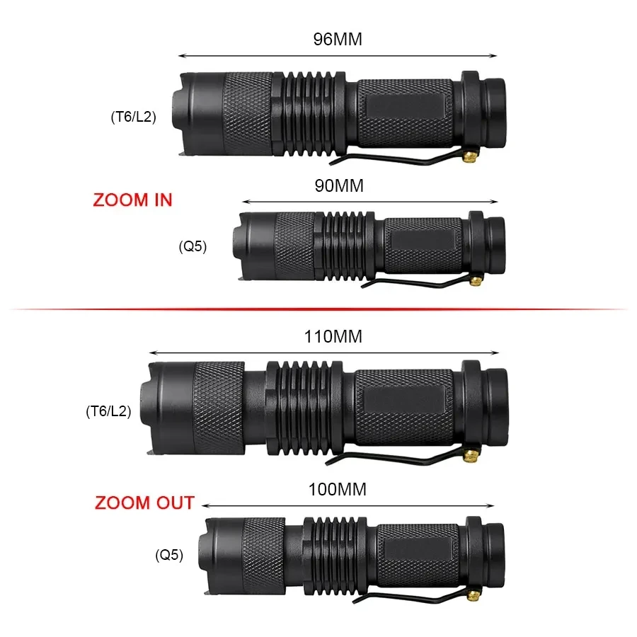Battery type: Q5 (AA / 14500 Battery) ,    T6/L2 (18650 Battery)