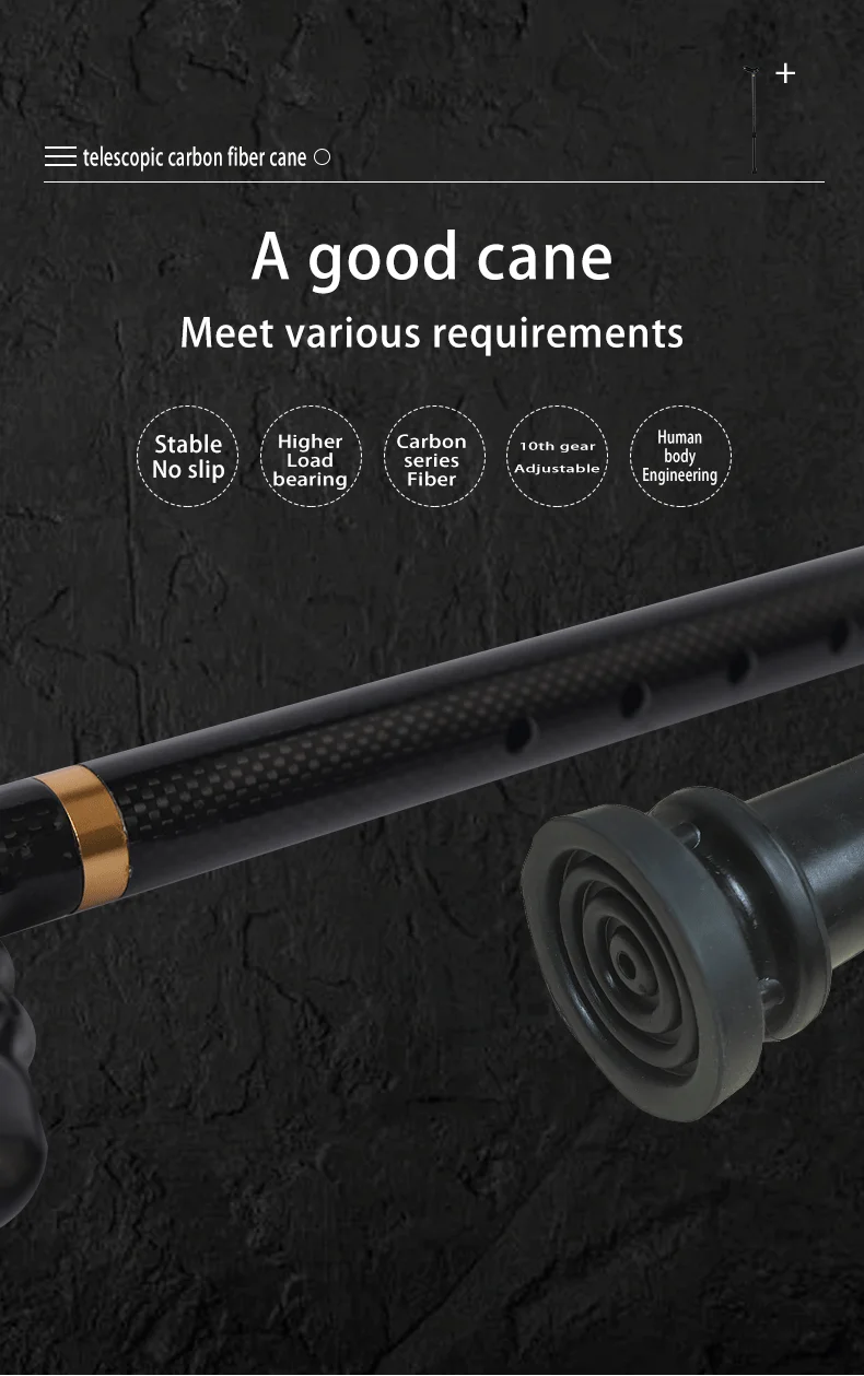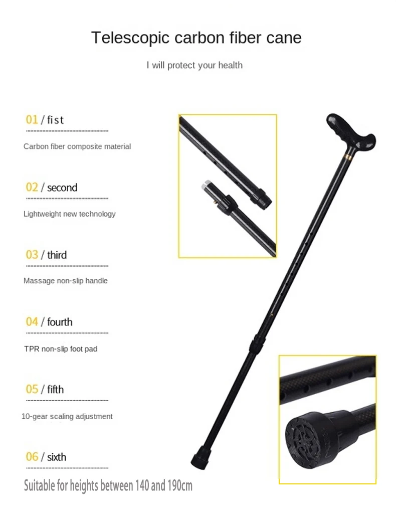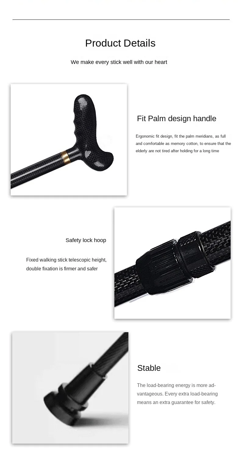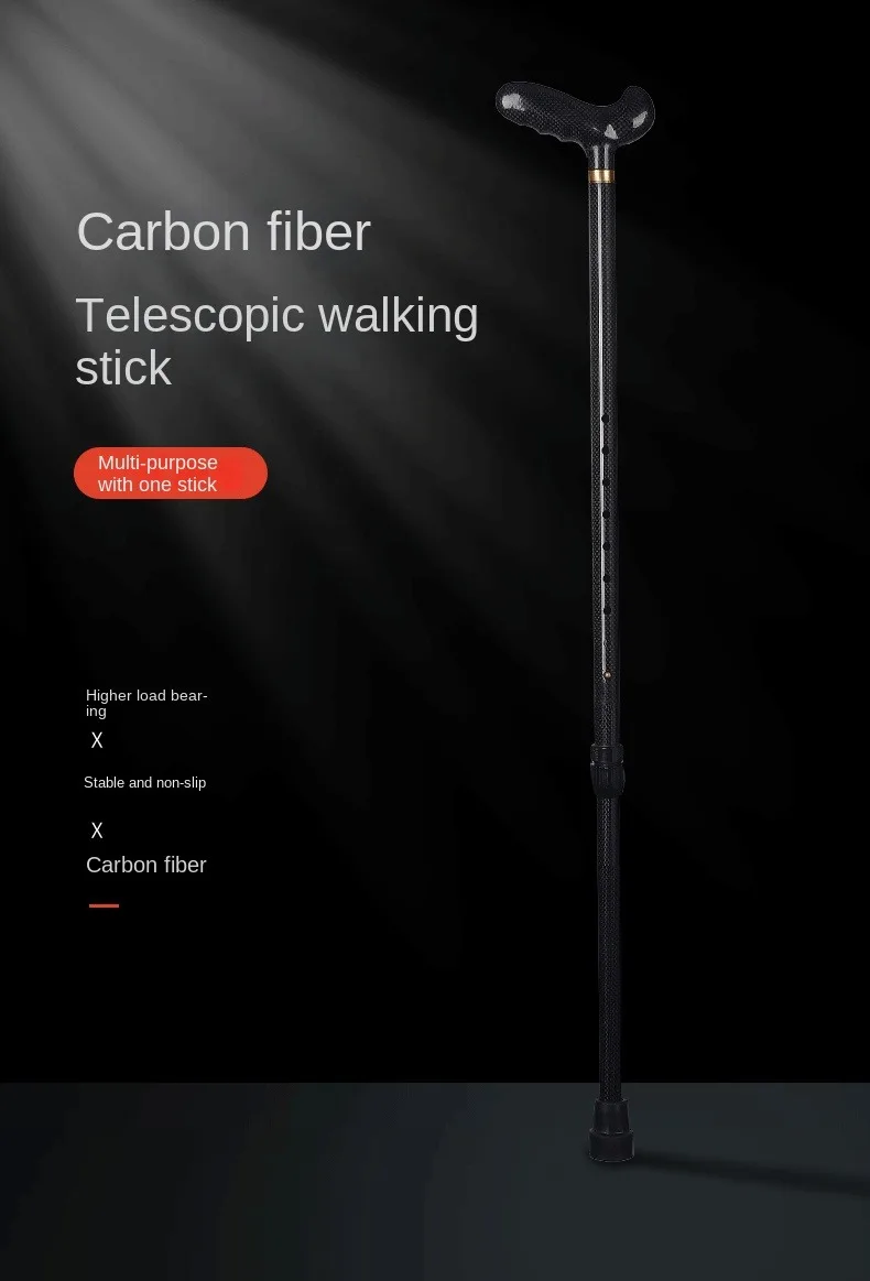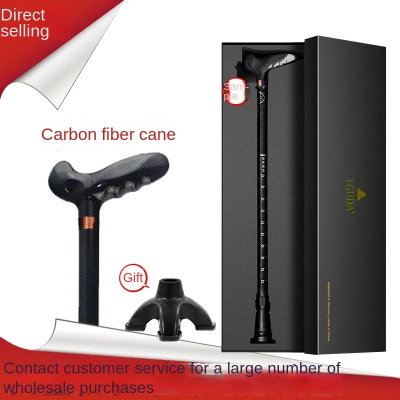 Ultra-light Retractable Carbon Hiking Booster Walking Anti-Slip Breaking Four-Legged Stable Armrest Stick Column Stick Device