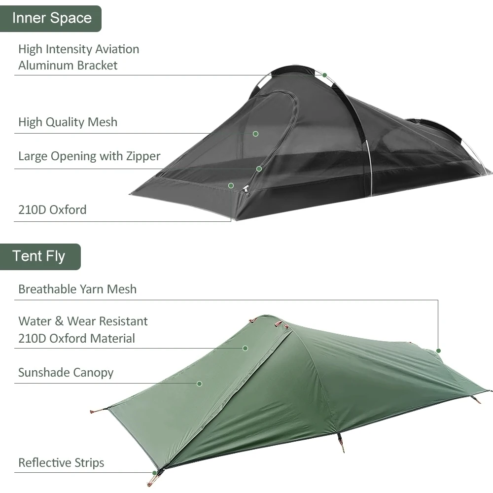 Ultralight Outdoor Single Person Camping Tent Water Resistant Tent Aviation Aluminum Support Portable Sleeping Bag Tent