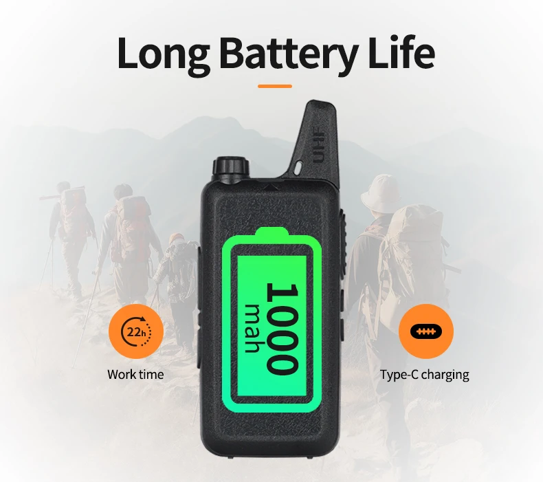 With a large capacity Li-ion battery, UK234 FRS 2-way radio provides up to 22 hours of working time.