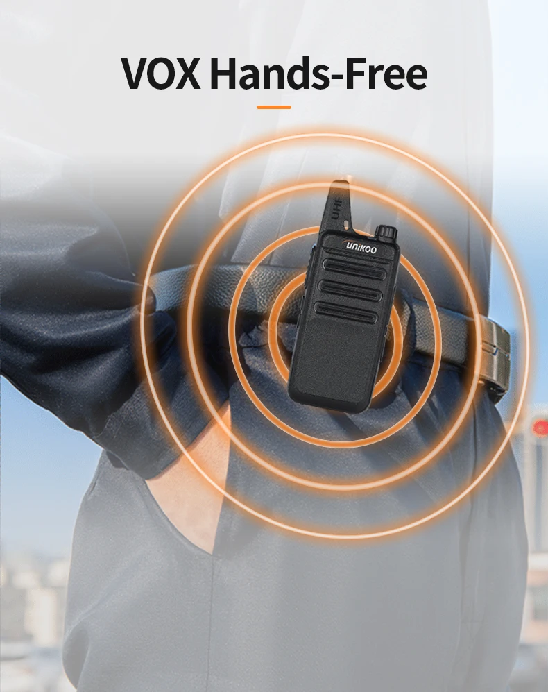 VOX function makes it convenient to transmit without pressing the PTT button.