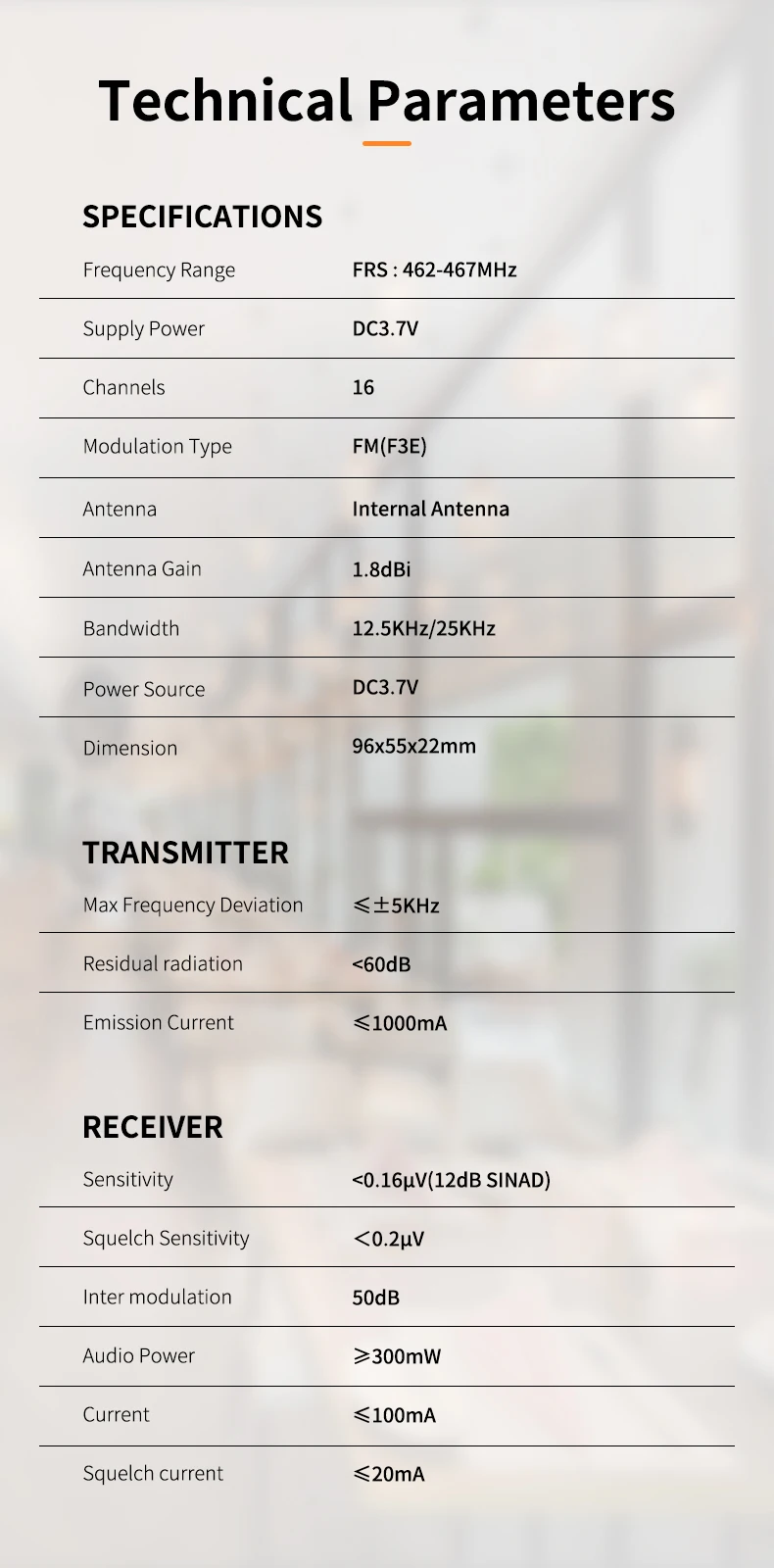 2. Factory setting PMR or FRS, so you don't need to worry about legal issues, you don't need to learn the frequency setting of walkie-talkie.