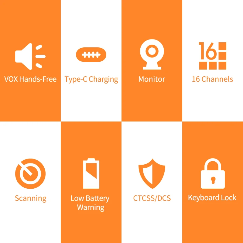 5. 16 channels, which are equipped with 50 CTCSS and 210 DCS codes, enabling secure communication with a variety of channel options.