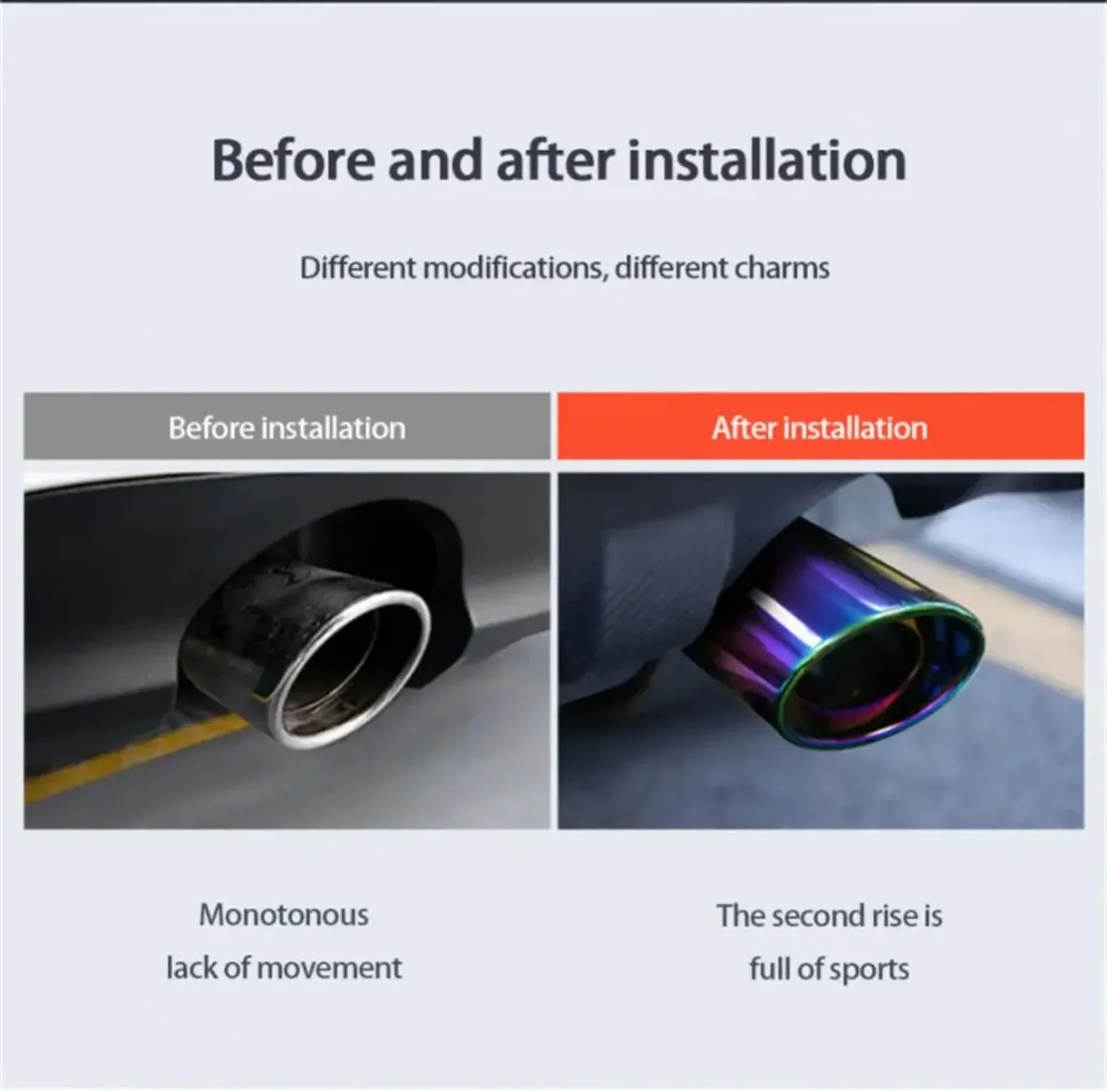 – Made of high quality stainless steel, exquisite workmanship, no fading, no rust; not rigid, dynamic; beautiful and durable; Protect the original car exhaust pipe.