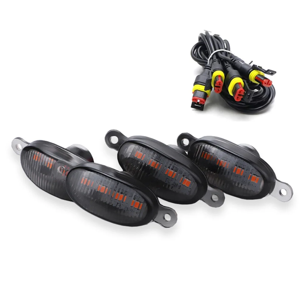 The complete kit comes with 3/4/5/6 pieces of light smoke lens full amber / white LED marker lamps with side mounting tabs and adapter/wire cord