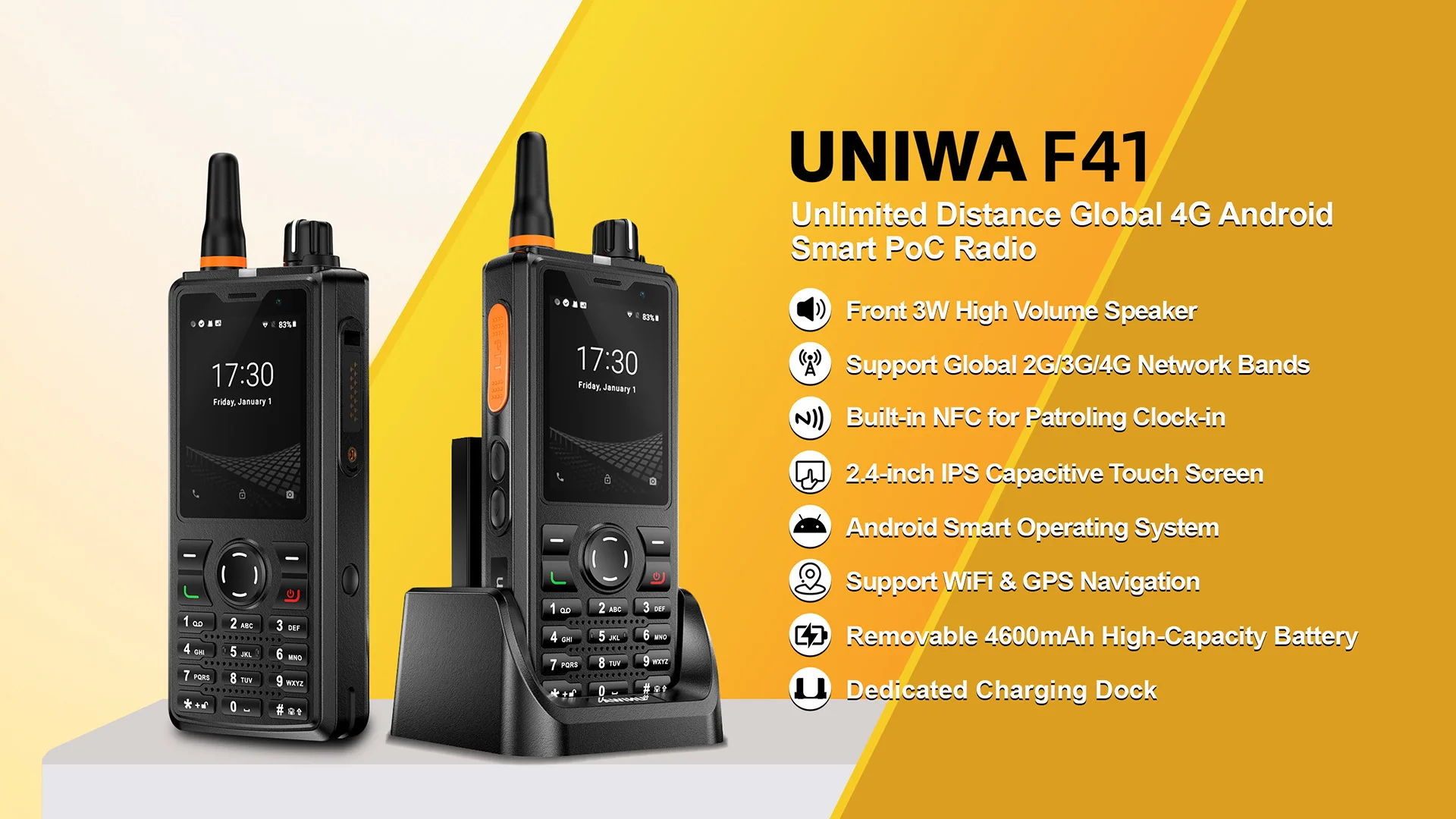 UNIWA F41 2.4″ Zello Walkie Talkie 4G Smartphone Android 8.1 phone-y-communication Waterproof PTT 4600mAh NFC Cellphone On Sale