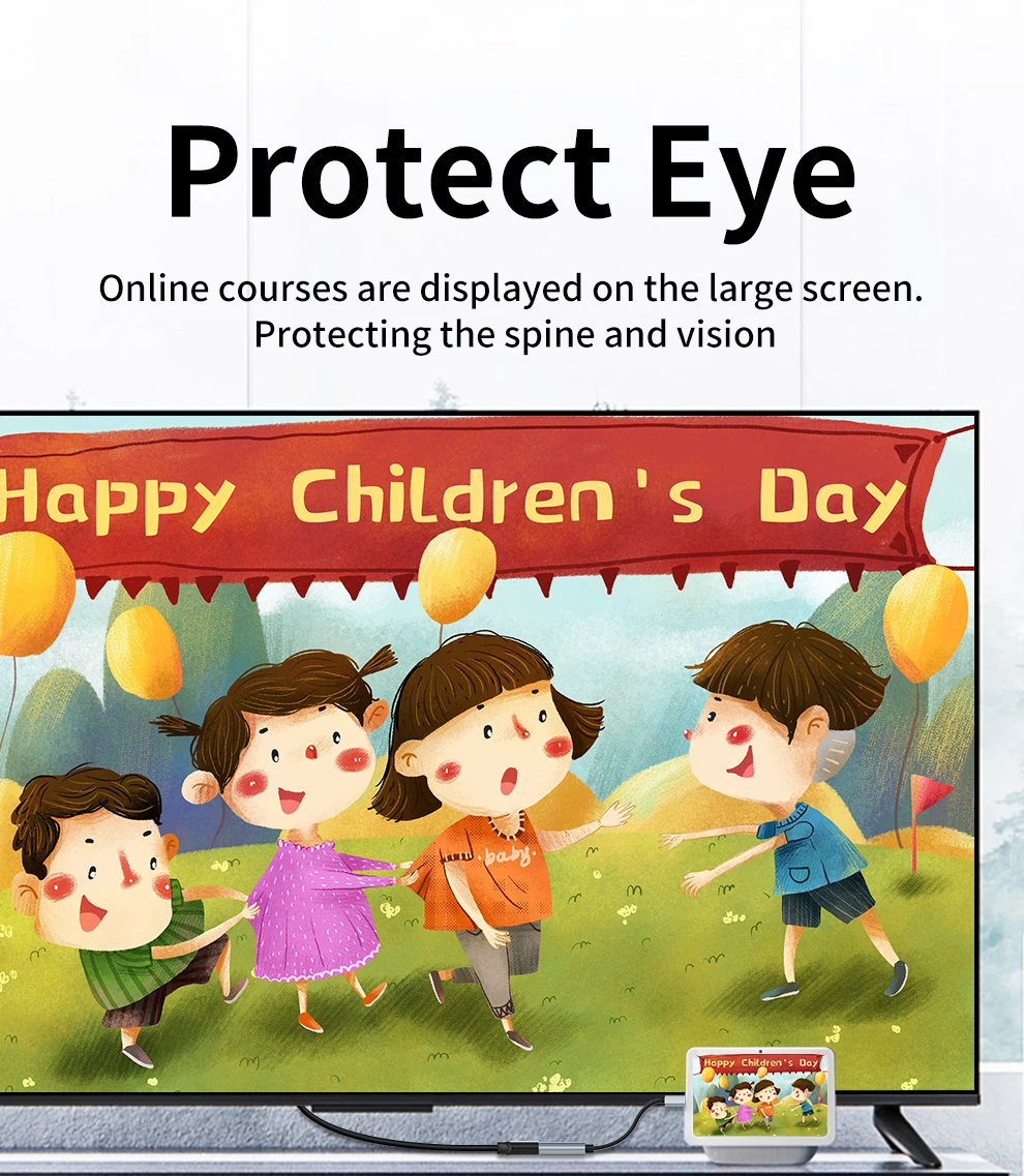 Online courses are displayed on the large screen. Protecting the spine and vision