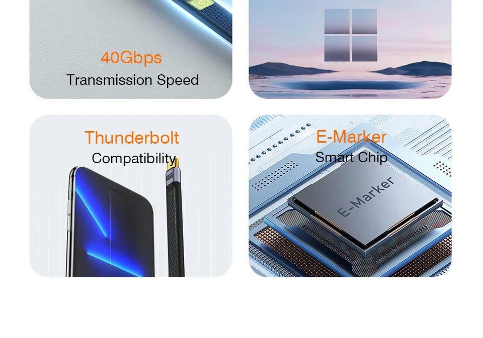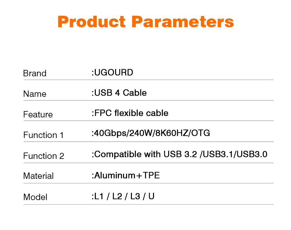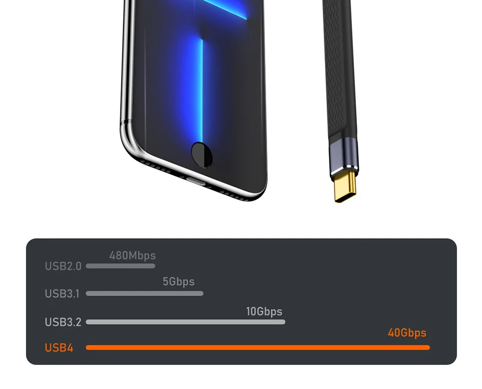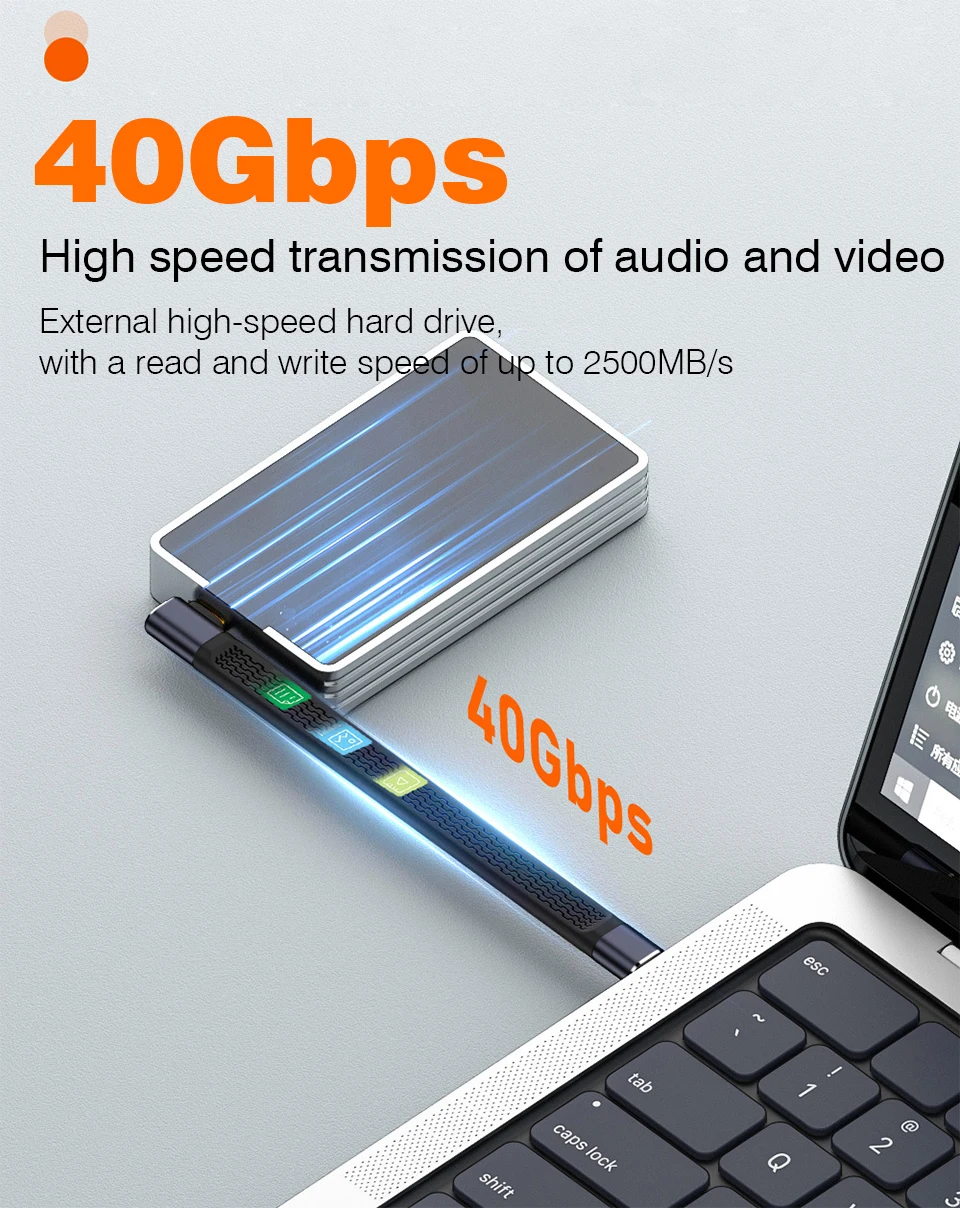 Standard USB4 cable, backward compatible with USB 3.2 /3.1/3.0/USB2.0.