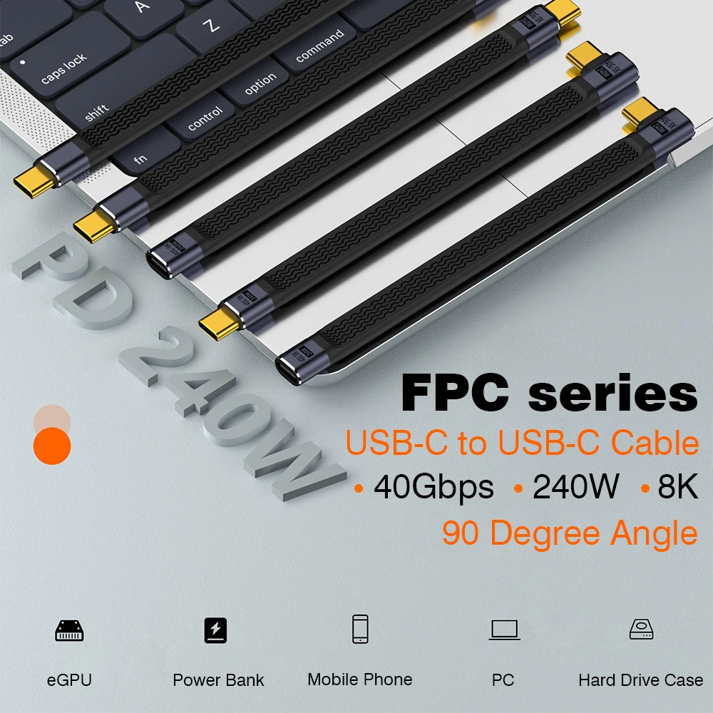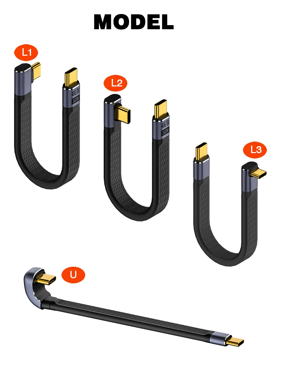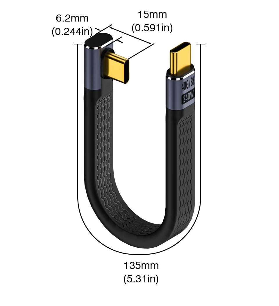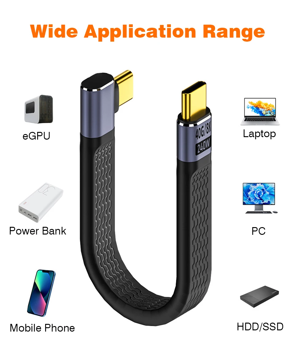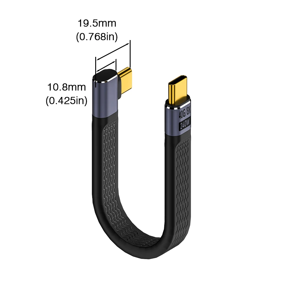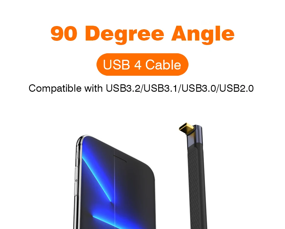 USB 4 90 Degree Thunderbolt3 Elbow USB C Cable 40Gbps Thunderbolt 4 Angle Type C Cable for SSD Laptop Macbook Elbow Connector