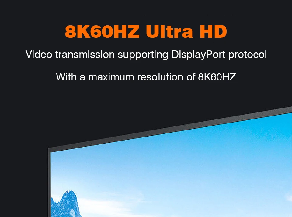 Video transmission supporting DisplayPort protocol, with a maximum resolution of 8K60HZ