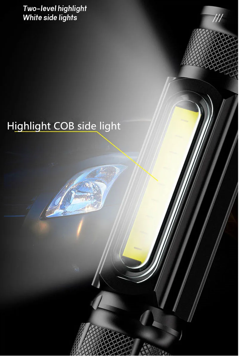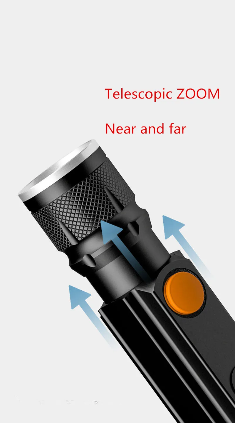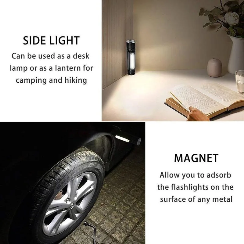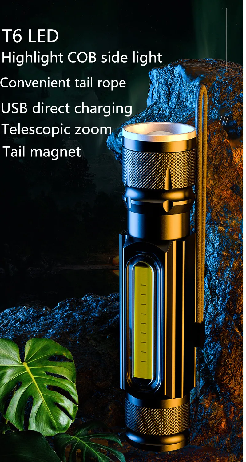 USB T6 Strong Light LED Rechargeable Flashlight Magnetic Torch Lanter Zoomable Flashlight COB Zoom Highlight Outdoor Lighting