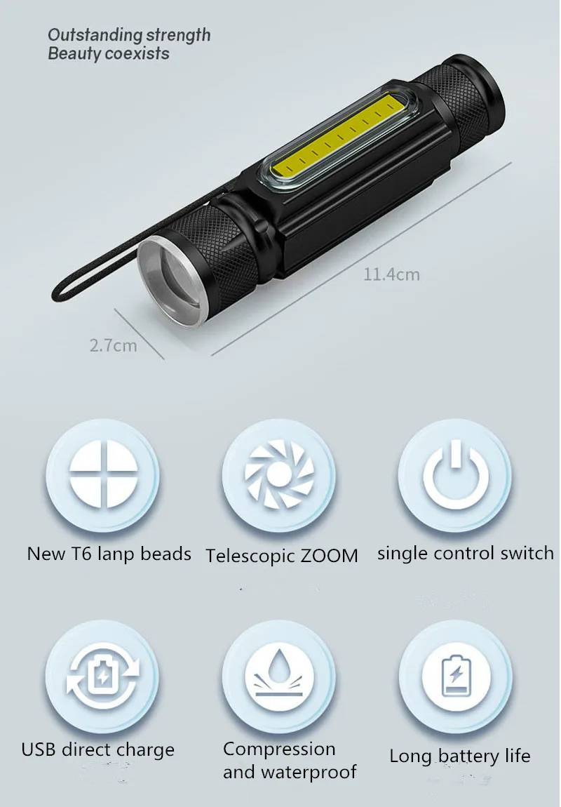Be the first to review “USB T6 Strong Light LED Rechargeable Flashlight Magnetic Torch Lanter Zoomable Flashlight COB Zoom Highlight Outdoor Lighting”
