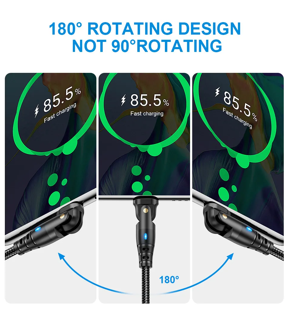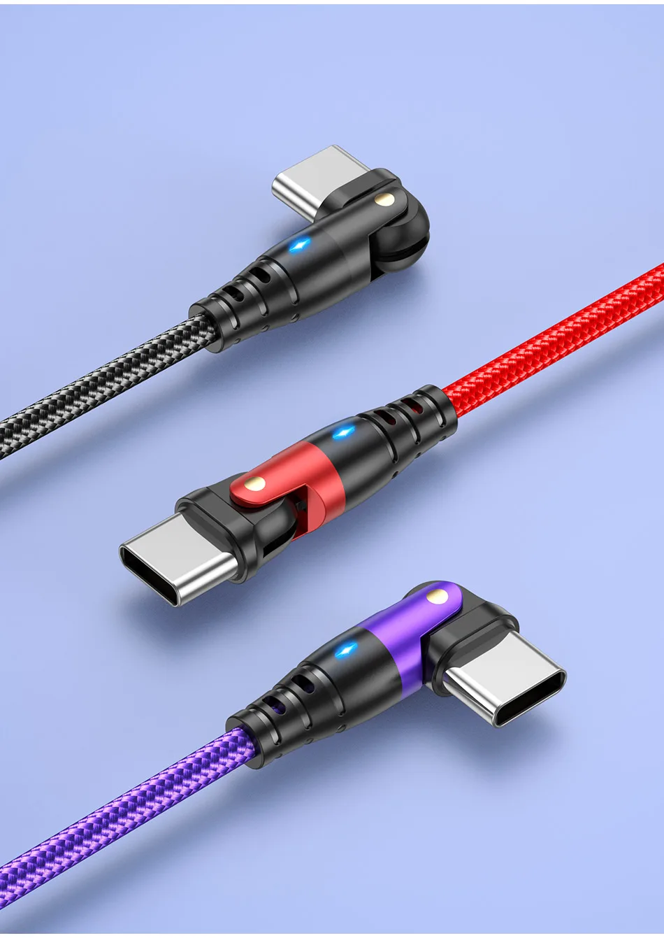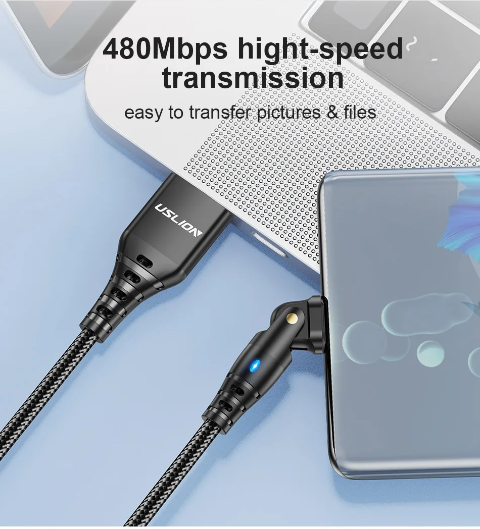 USLION Red Type C Cable 180 Rotate 3A Fast Charging Wire For Samsung Xiaomi Mobile Phone USB C Cable Type C Charger Data Cables