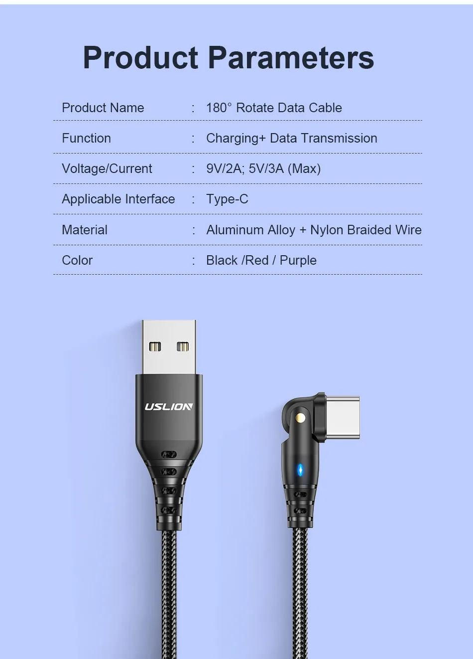 Be the first to review “USLION Red Type C Cable 180 Rotate 3A Fast Charging Wire For Samsung Xiaomi Mobile Phone USB C Cable Type C Charger Data Cables”