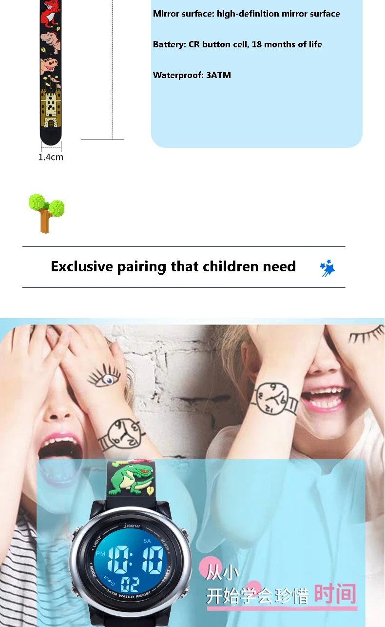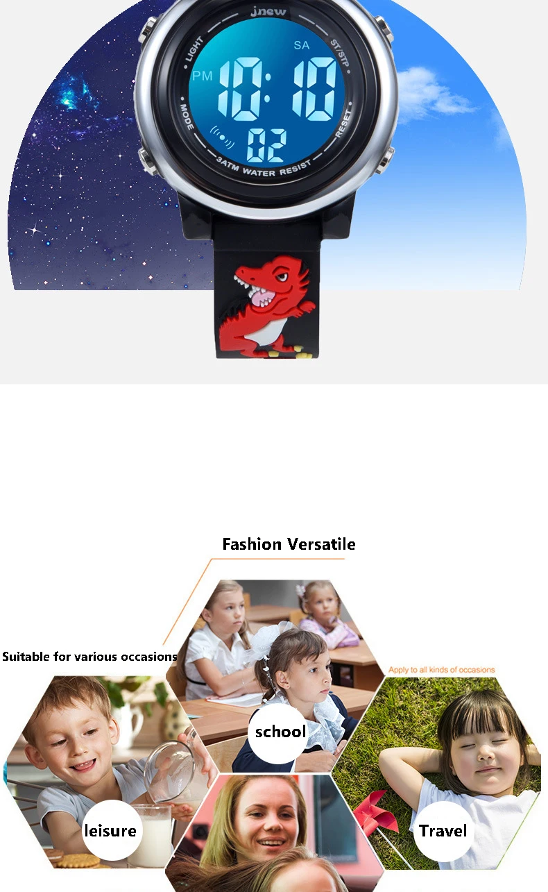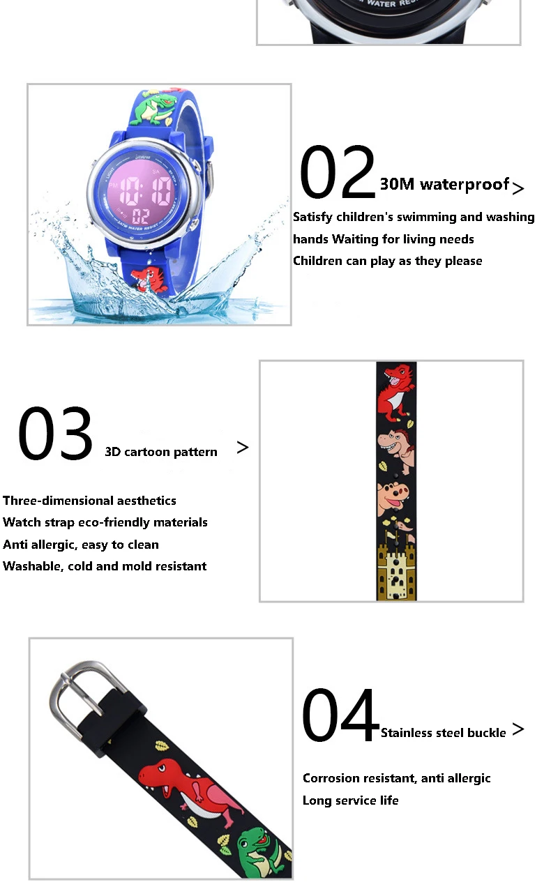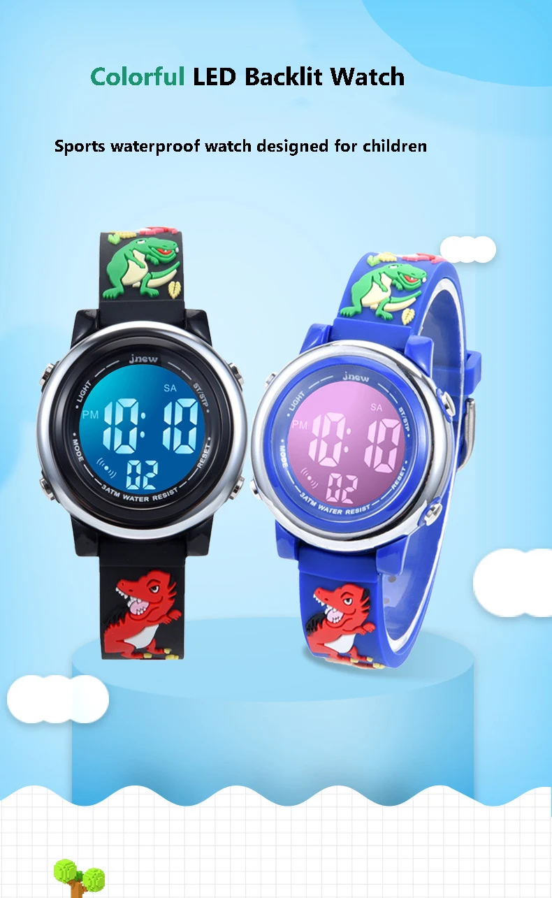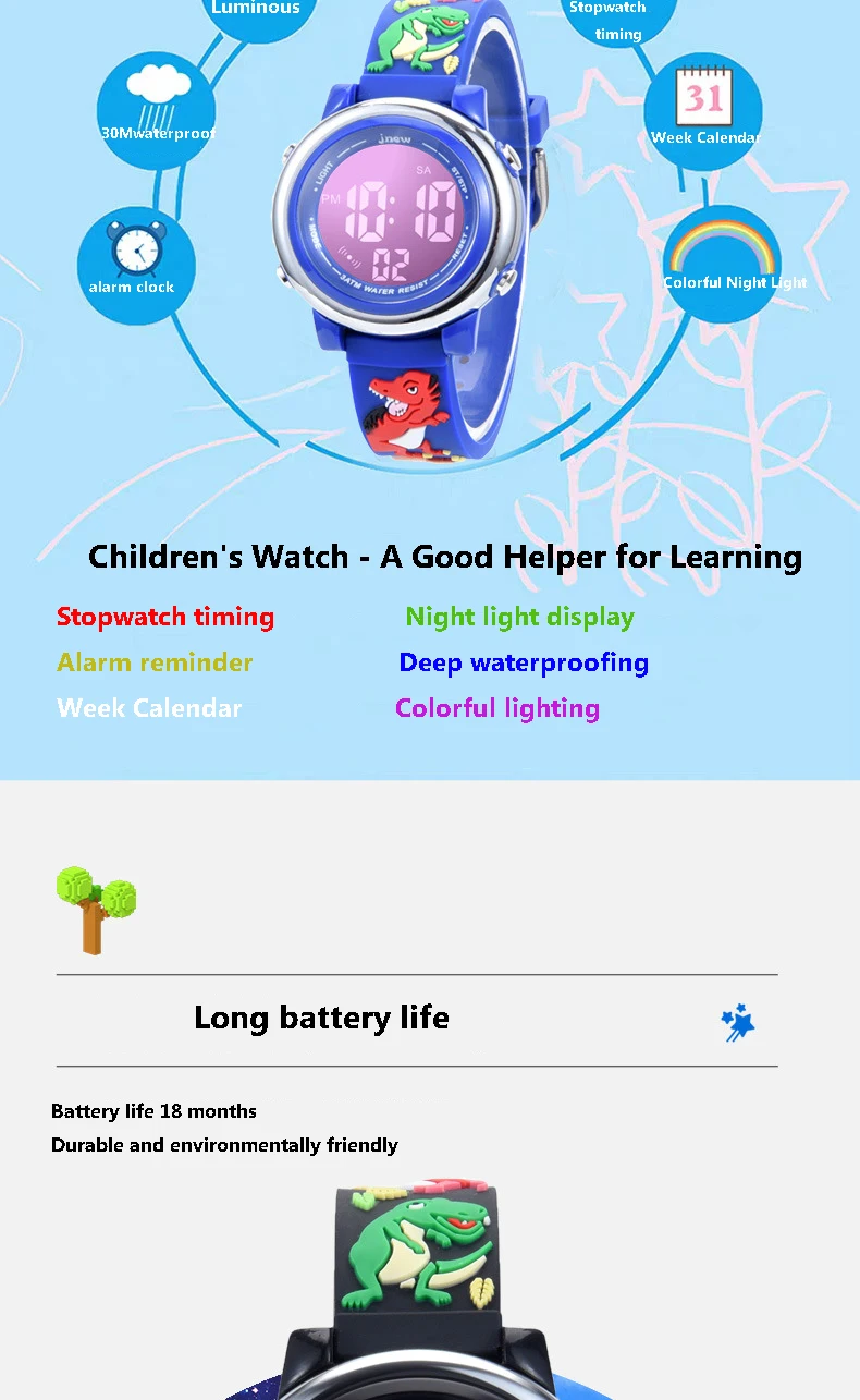 UTHAI C09 Kids Children Electronic Watches LED Cute Cartoon Dinosaur Alarm 30M Waterproof Luminous Boy Student Smart Watch Gift
