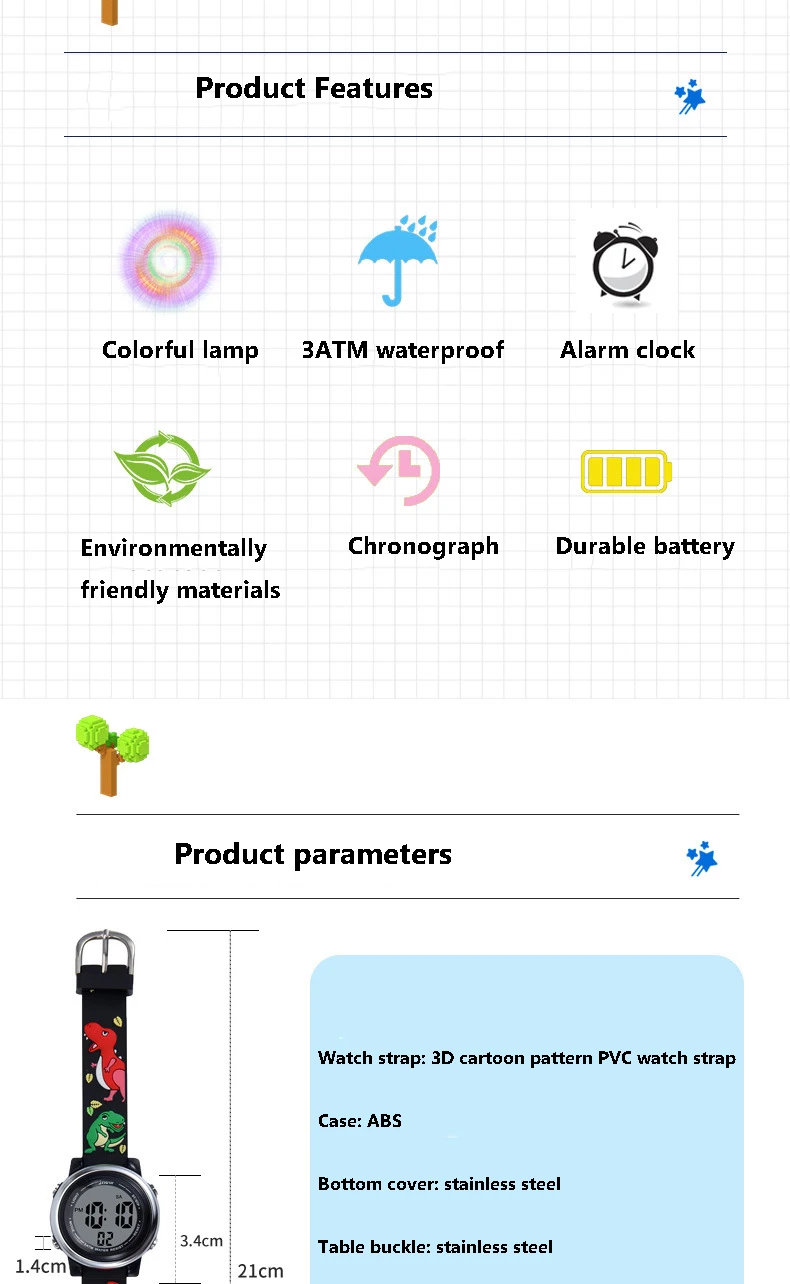 Be the first to review “UTHAI C09 Kids Children Electronic Watches LED Cute Cartoon Dinosaur Alarm 30M Waterproof Luminous Boy Student Smart Watch Gift”