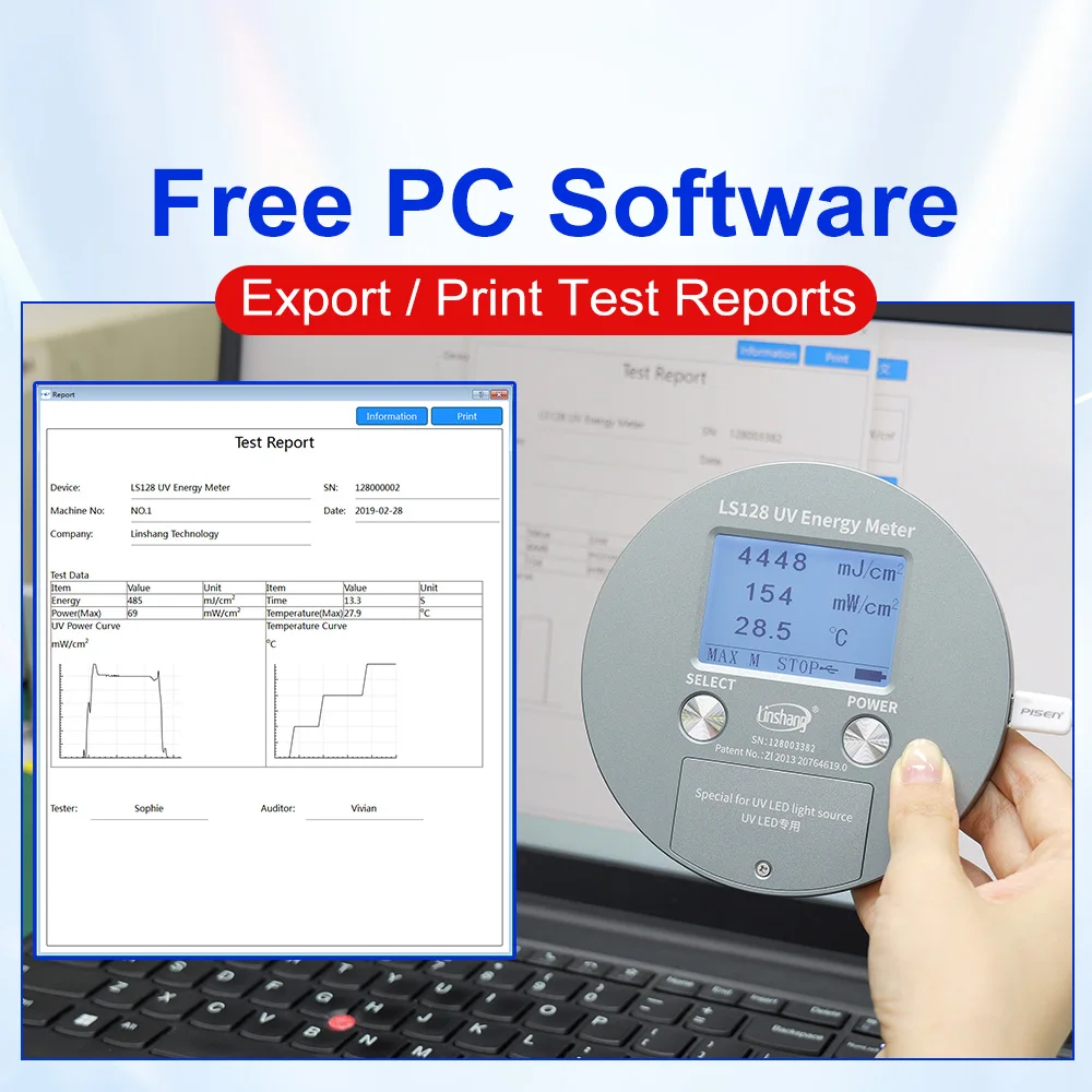 LS128 is a professional UV energy meter for testing UV LED light sources. The spectral response range is 340nm-420nm, and it can test UV LED lamps in various wavelength bands such as 365nm, 375nm, 385nm, 395nm, 405nm and so on. Simultaneous measurement of energy, power and temperature and display of power curve and temperature curve can be realized. Complimentary computer software, to read the detailed record data, and can generate test reports. Ultra-large range design, power can be measured up to 40,000mW/cm².