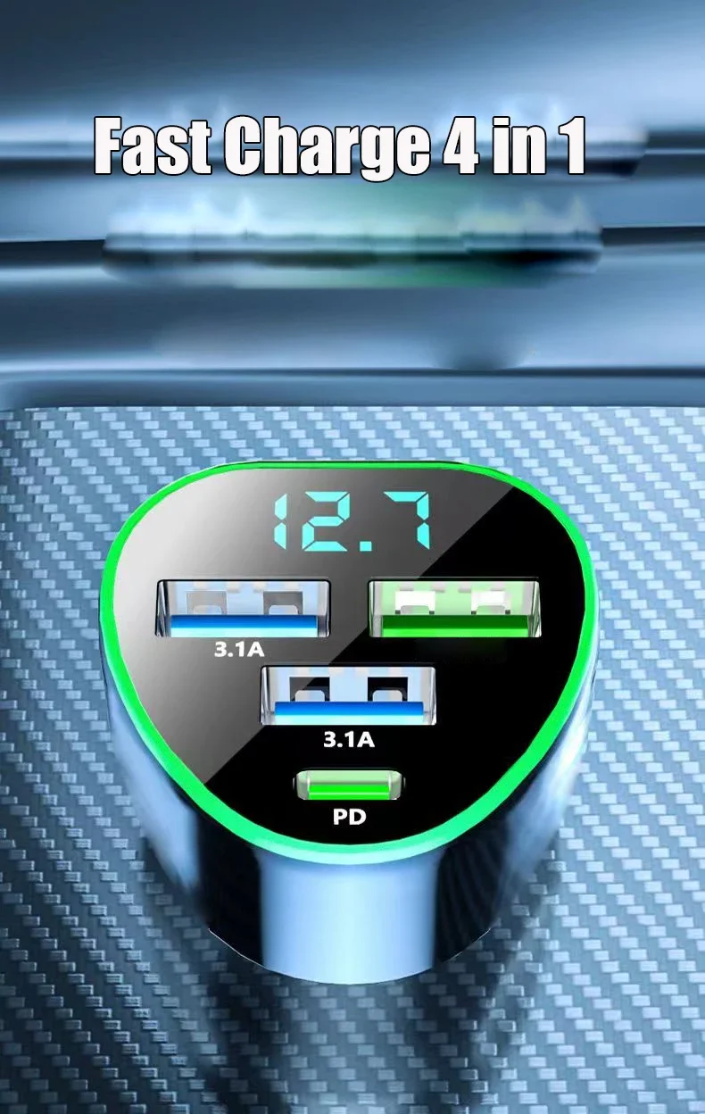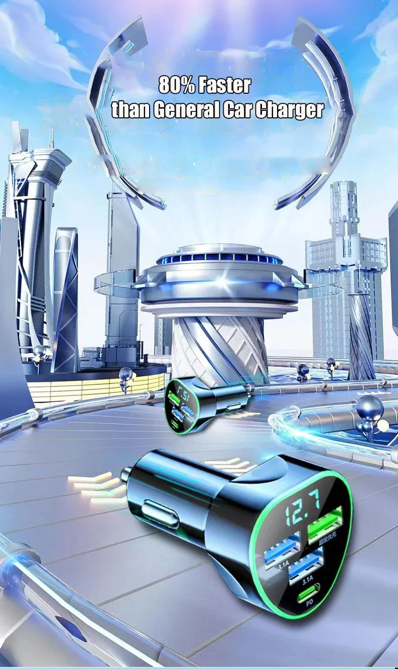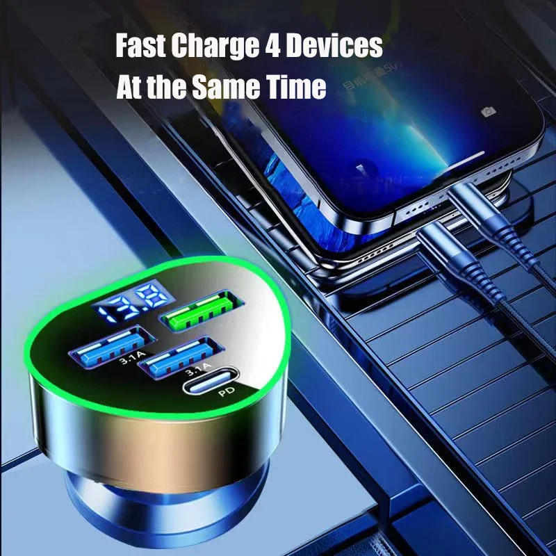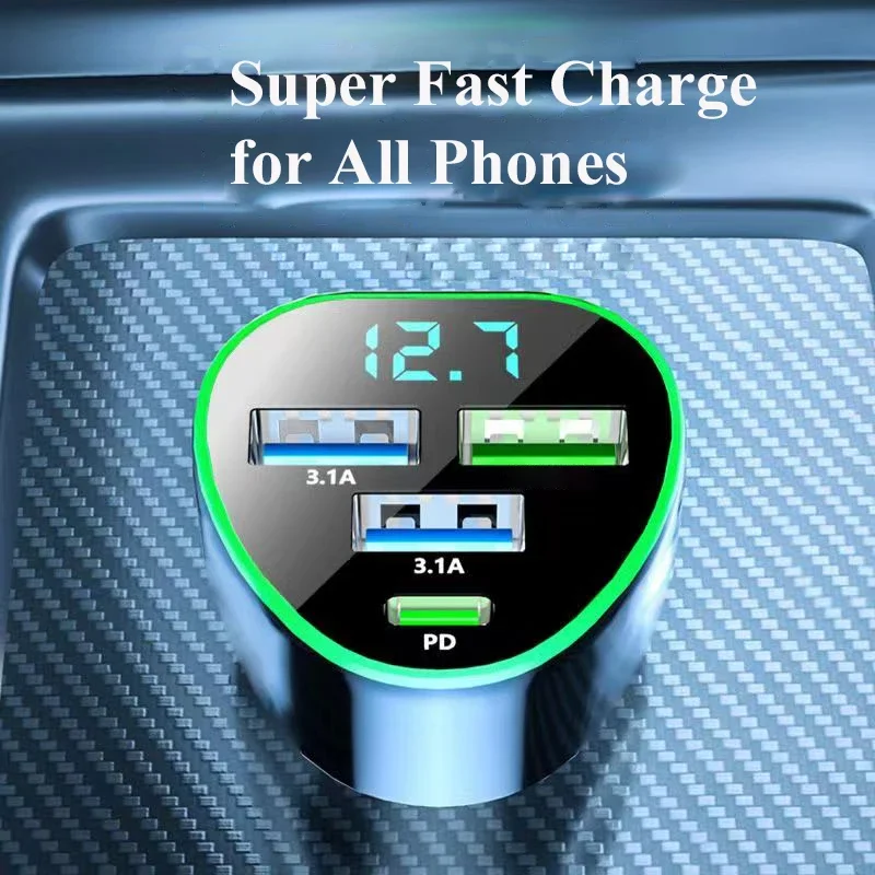 UYUXIO USB C Car Phone Charger Super Fast Charge in Car with LED Voltage Display for iPhone Samsung Huawei Oneplus Android Phone