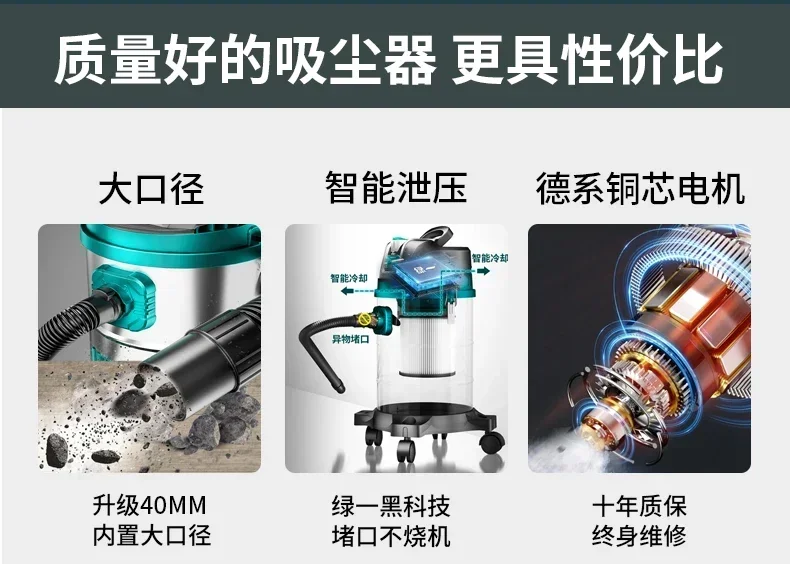Vacuum cleaner large suction power household powerful high power industrial special car wash commercial dust vacuum 220V